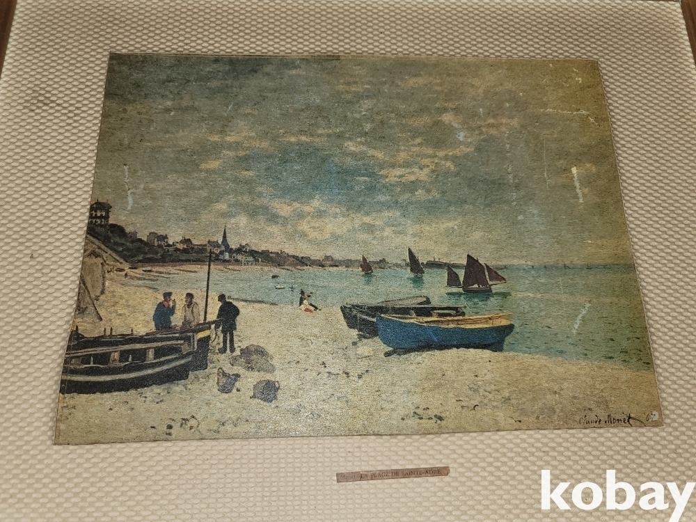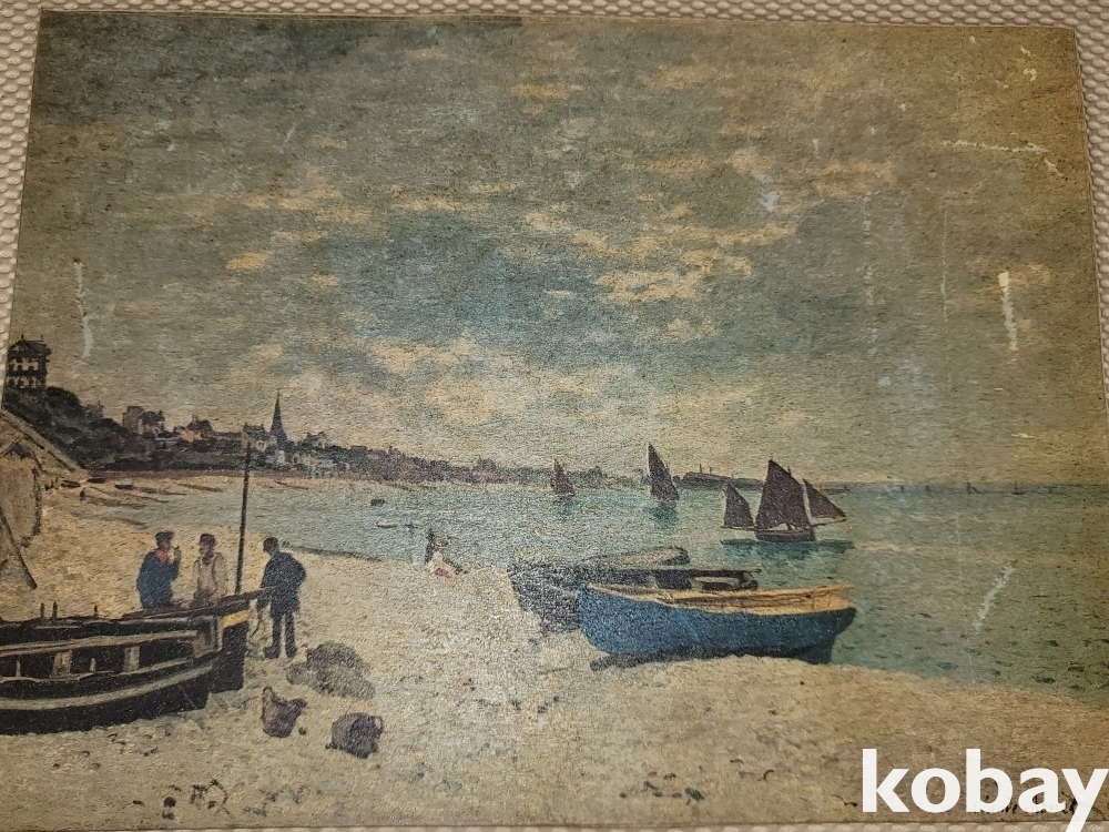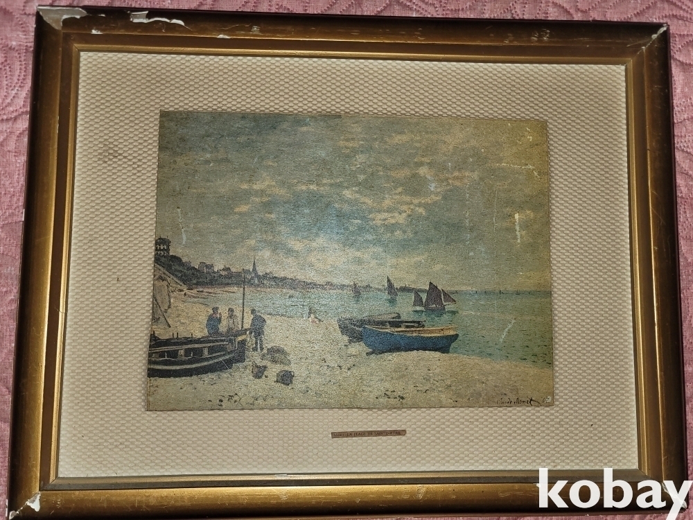 빈티지 세월 감이 느껴지는 클로드 모네의 생트아드레스 해변 그림 액자입니다.
