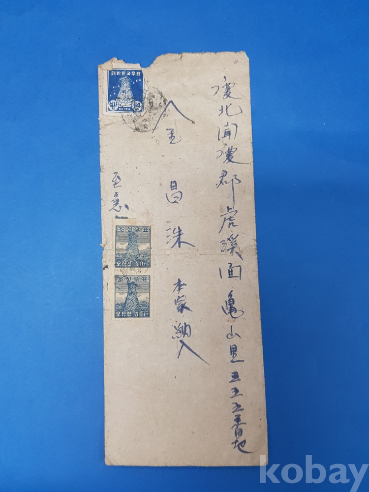 **** 실체봉투 50전 2매+14원 1매 첩부