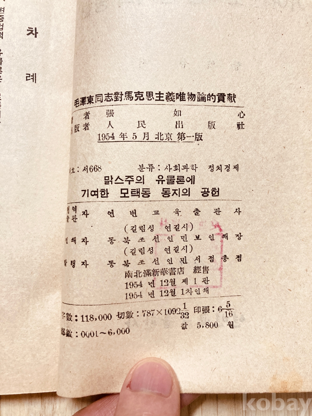 [도서] 50년대 연변에서 순한글로 발행한 "모택동 동지의 공헌"