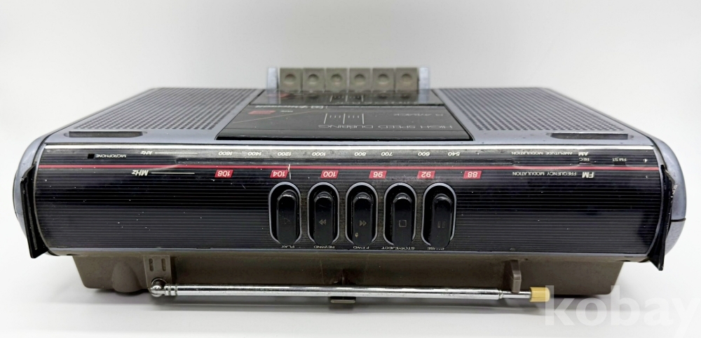 상품설명 | 앞면 상, 하로 2개의 카세트 삽입이 동시에 가능하며 우측 버튼으로 라디오 재생할 수 있는 제품이다. 전원 : AC 120V, DC 9V ("C" size x 6) | ||