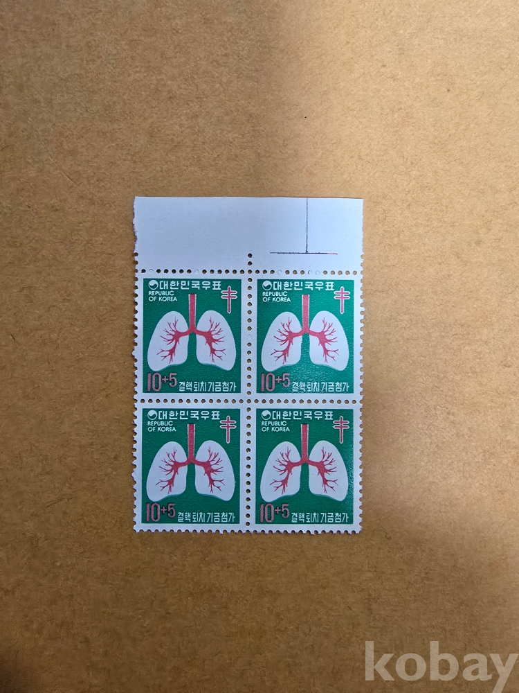 미사용 명판우표/74'11.1결핵퇴치 기금참가
