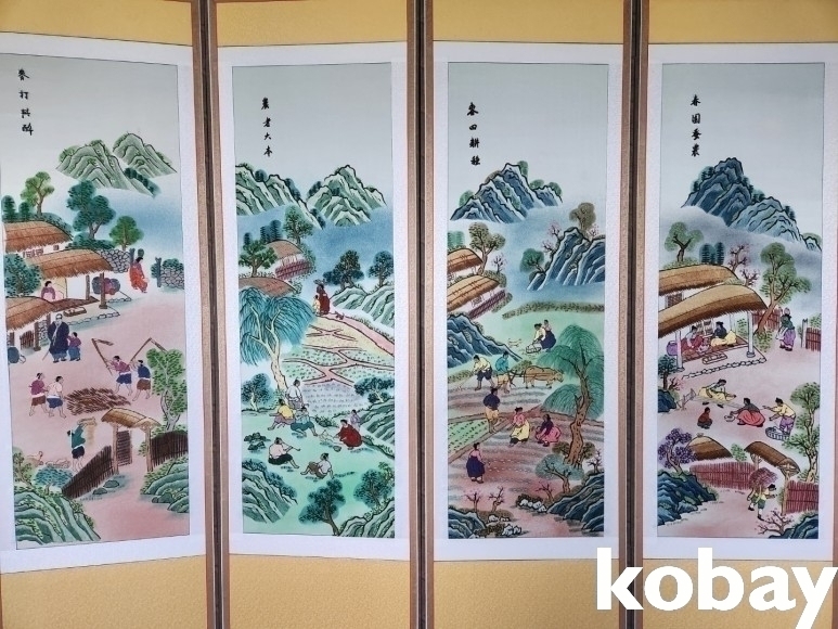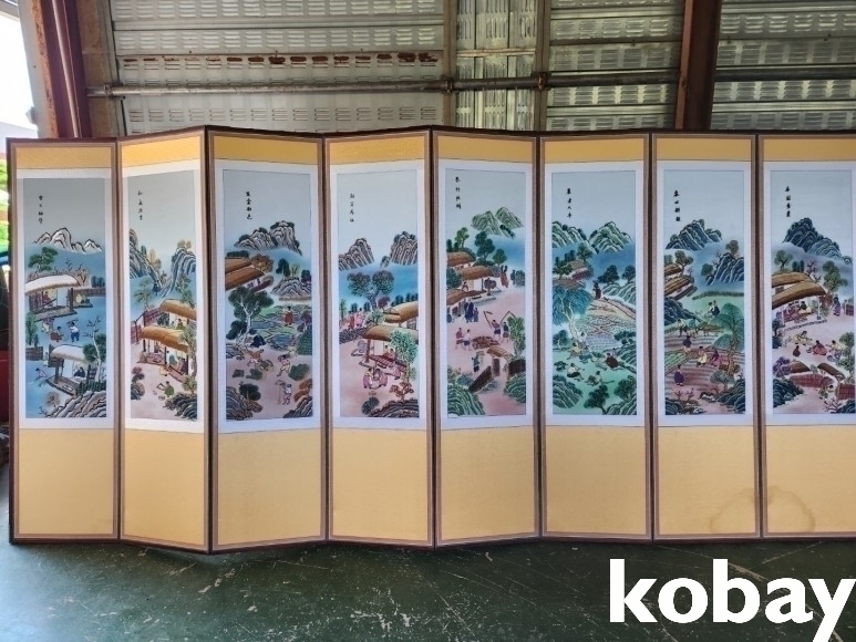 전통 풍속의 모습을 자수로 표현한 8폭 병풍 입니다.