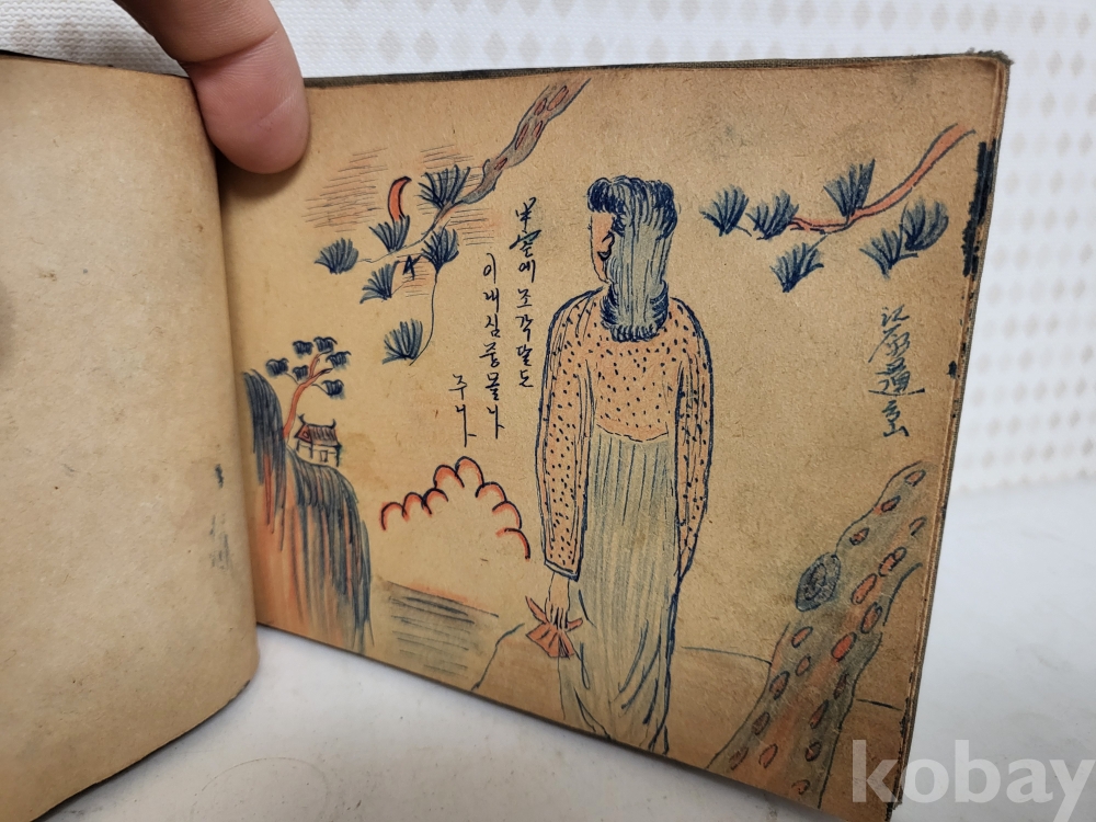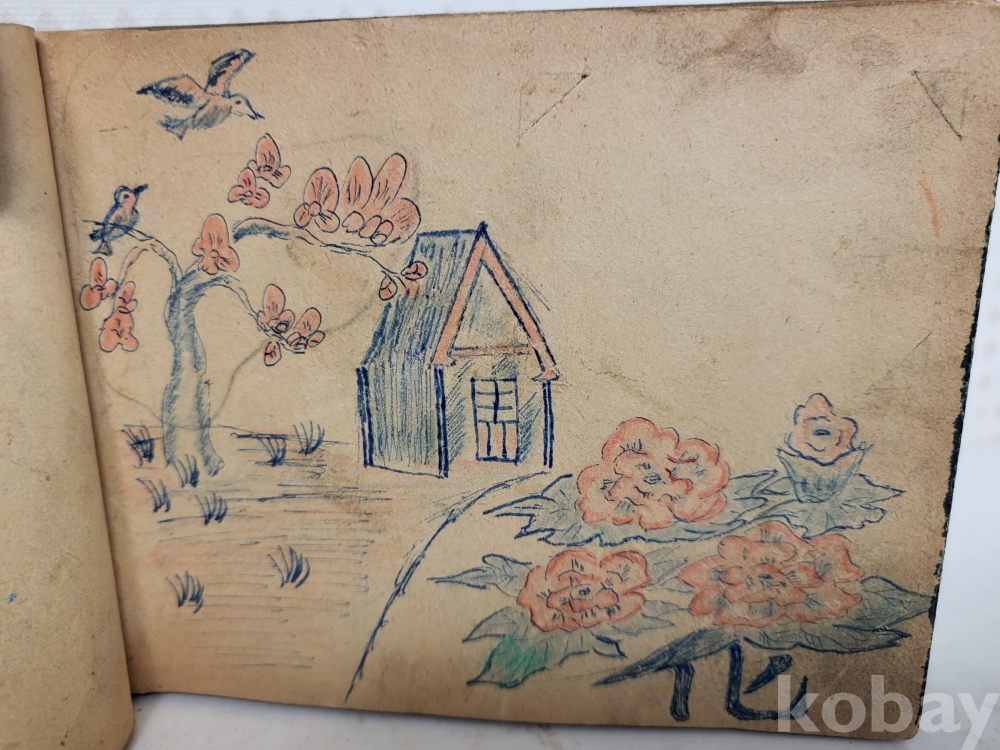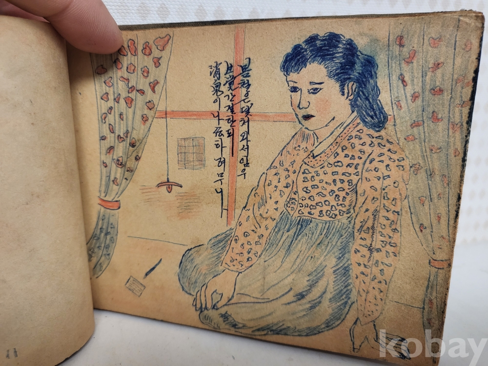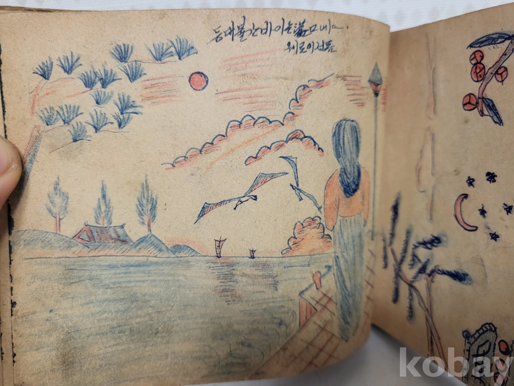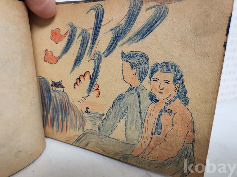 연대미상 해방이후같습니다 그당시 연습메모장이며 그리워하는 애정에대한 내용이고 그림실력이 제법좋아보입니다 군에서 군인이 그린것같습니다 일부사진 참조하시고 입찰자제해주세요