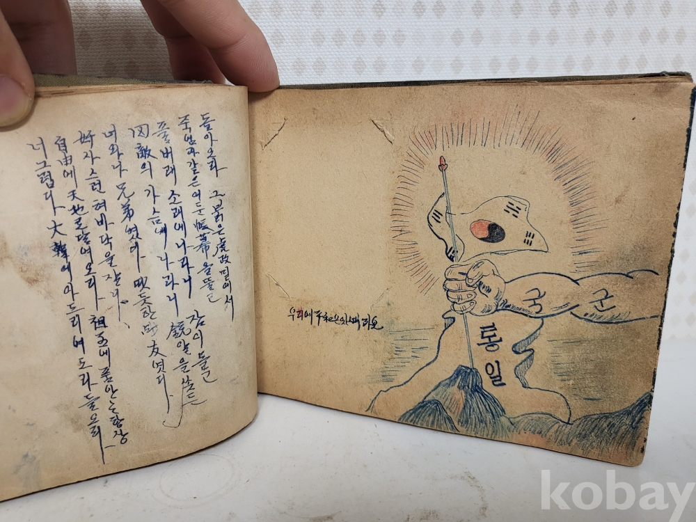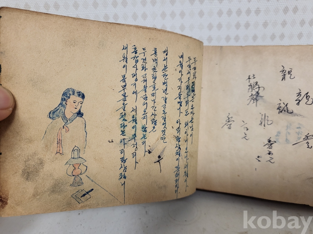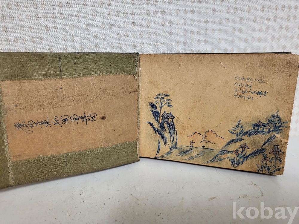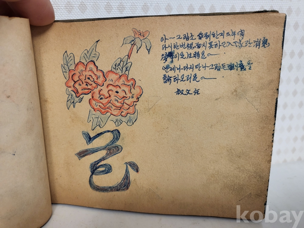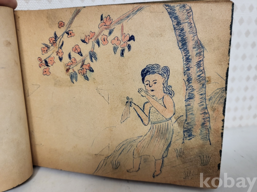연대미상 해방이후같습니다 그당시 연습메모장이며 그리워하는 애정에대한 내용이고 그림실력이 제법좋아보입니다 군에서 군인이 그린것같습니다 일부사진 참조하시고 입찰자제해주세요