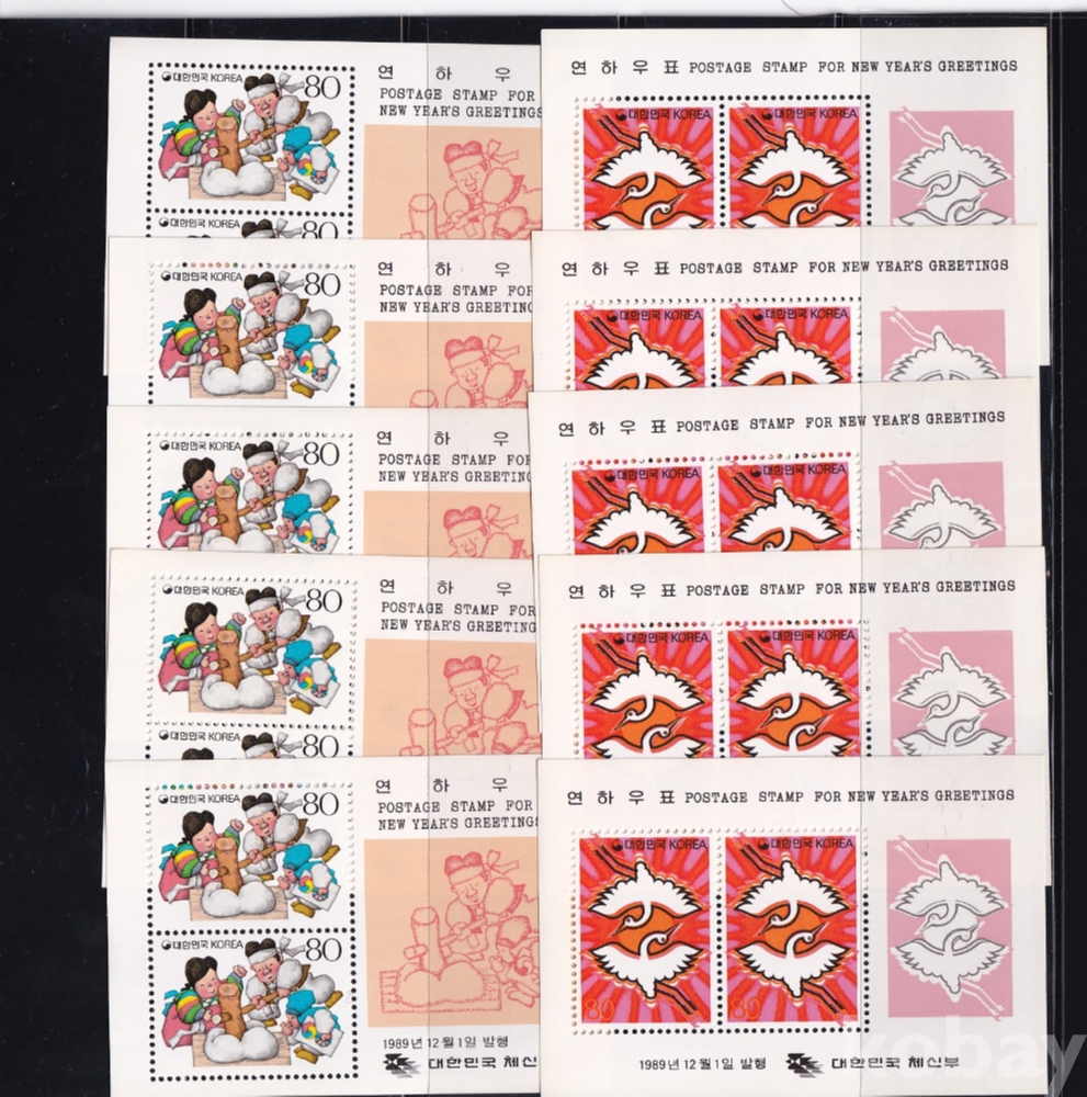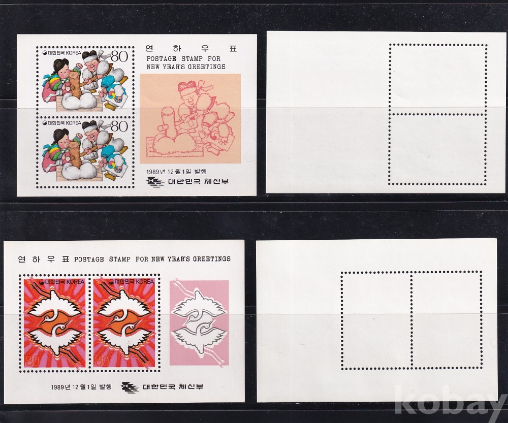 - 미사용 1990년용 연하우표 시트 2종 10장 모음 - 1989년 발행