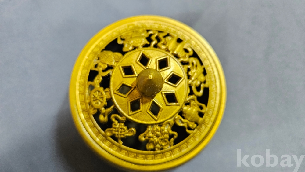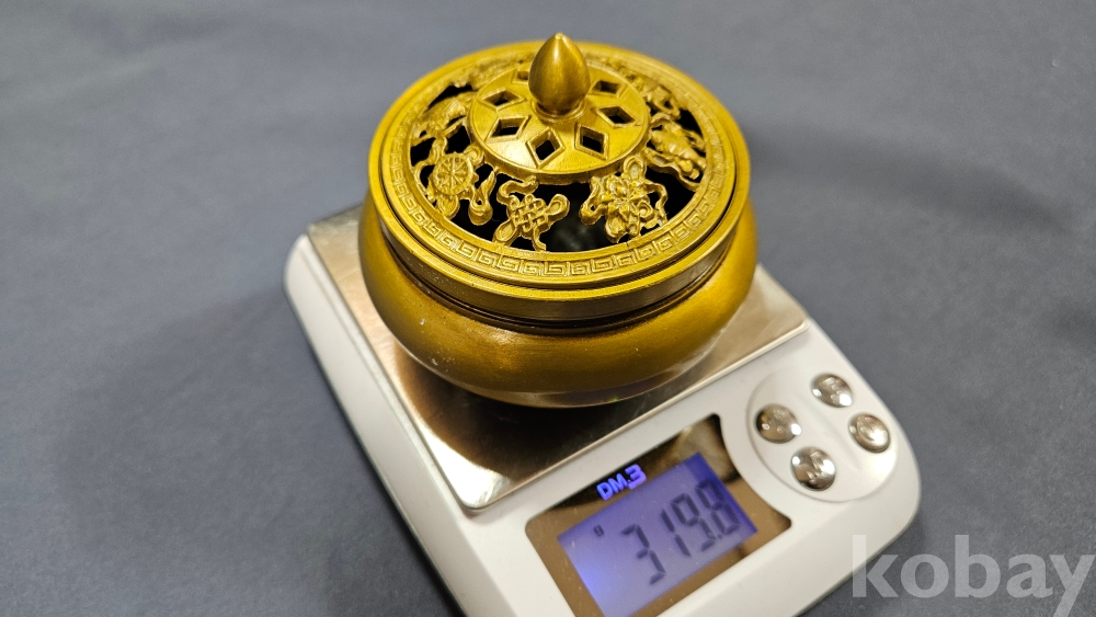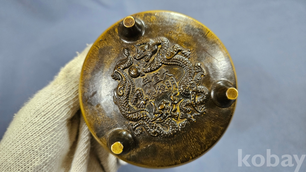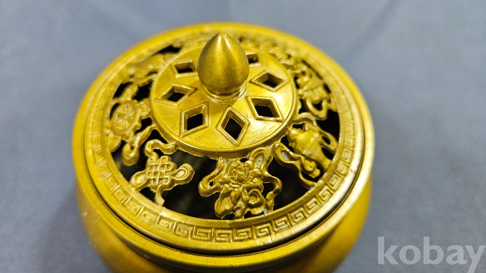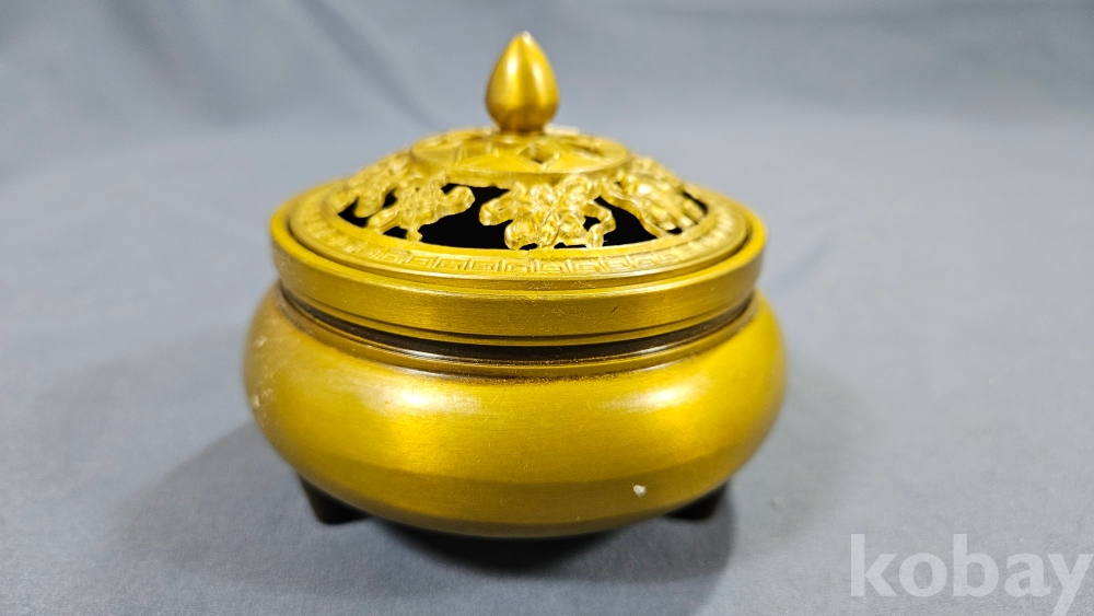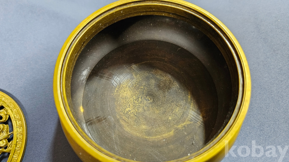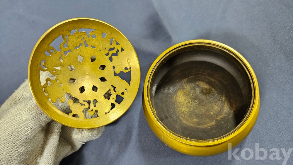 뚜껑 문양이 멋스러운 동 향로입니다.