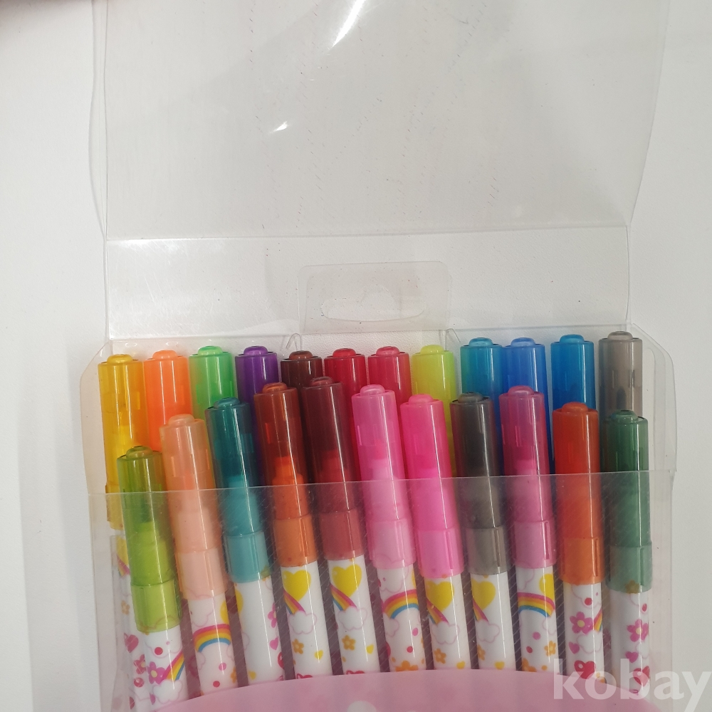 『천원경매』11-0114 사인펜 24색(24색중 1개 없음), 크레파스 24색(부러짐 있음)