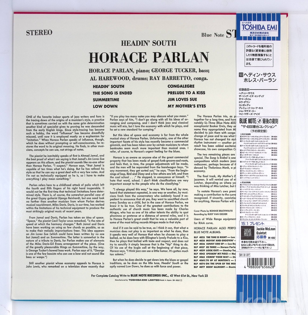 [블루노트] Horace Parlan – Headin' South 일본 1991
