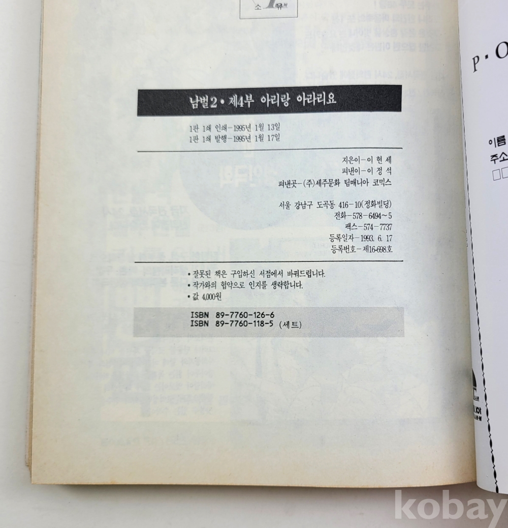 상 태 | 훼손 및 오염 정도(상태를 강,중,약,양호로 표시함) 사진 참고 부탁드립니다. / 표지 : (1~5)약 - 미미 • 책등 : (1~5)약 - 미미 ⦁ 내지 : (1)약 - 미미 (2,3,5)양호 (4) 약 - 낙장 |