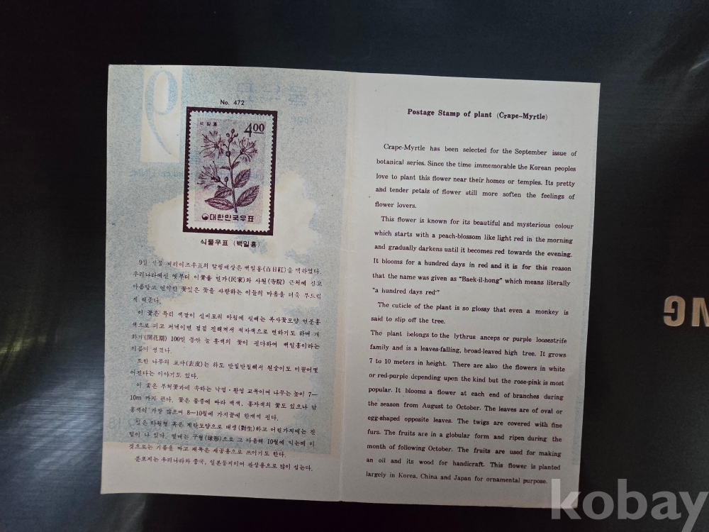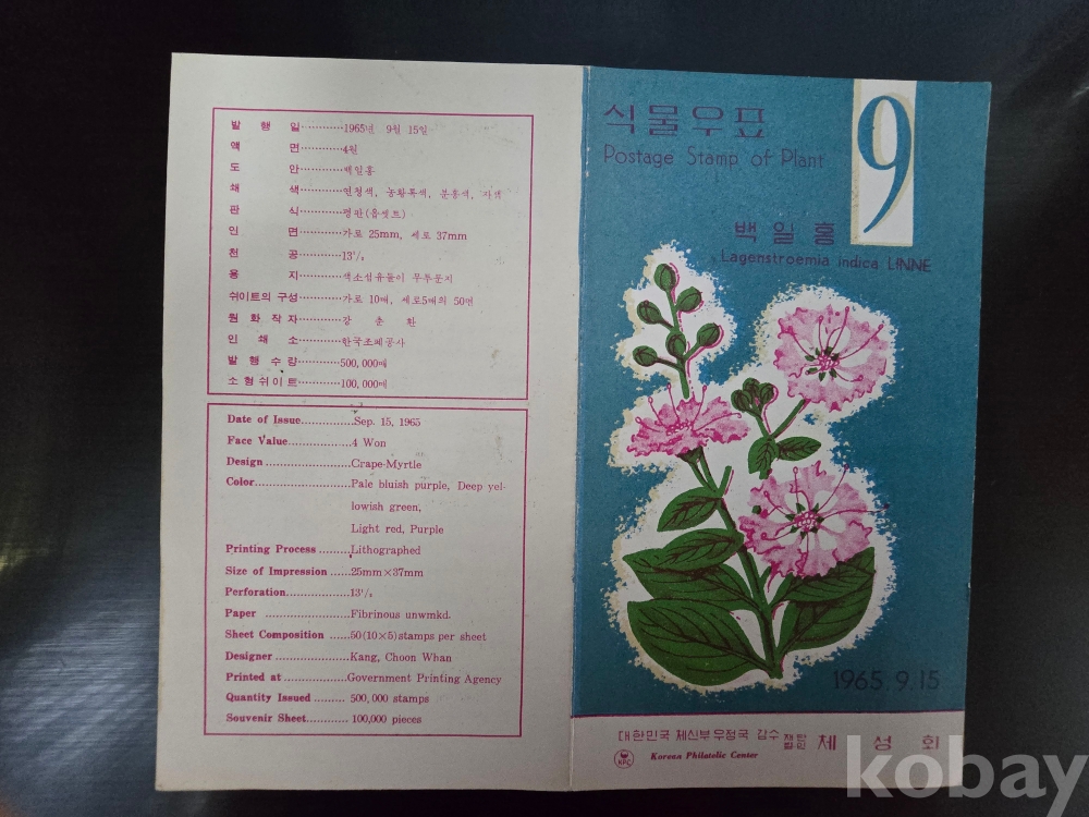 우표안내카드/65'9.15 식물우표 백일홍 접힘 있슴