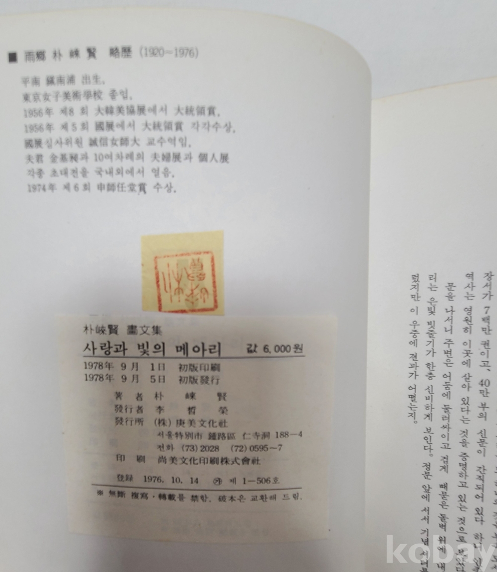 우향 박래현 화문집 <사랑과 빛의 메아리> 초판본