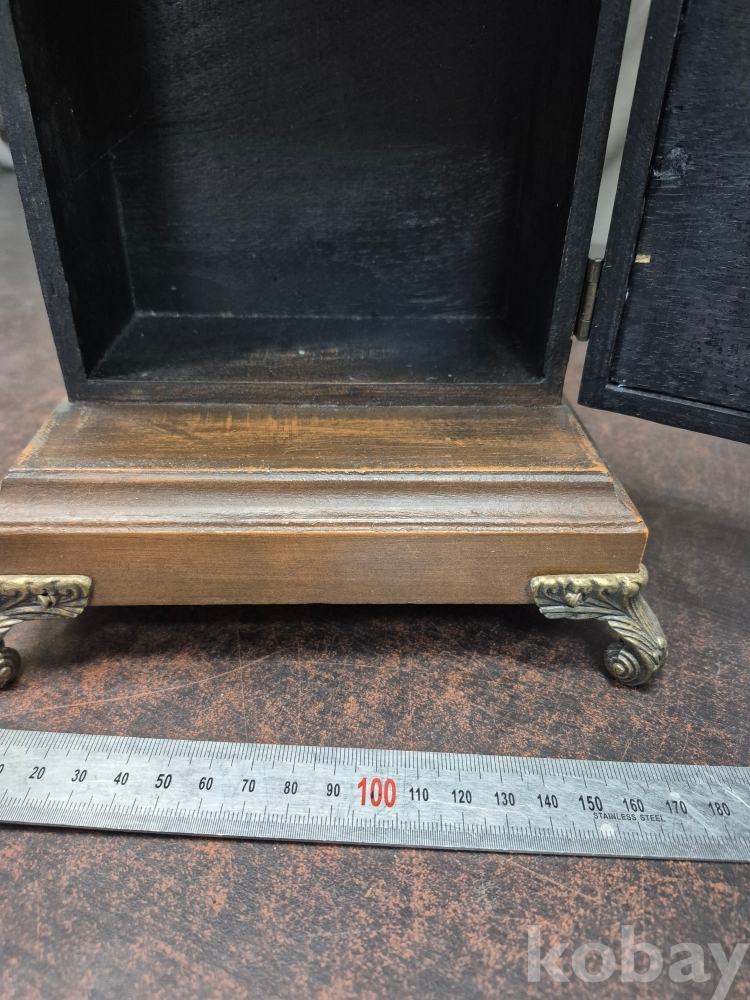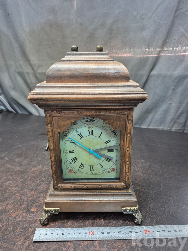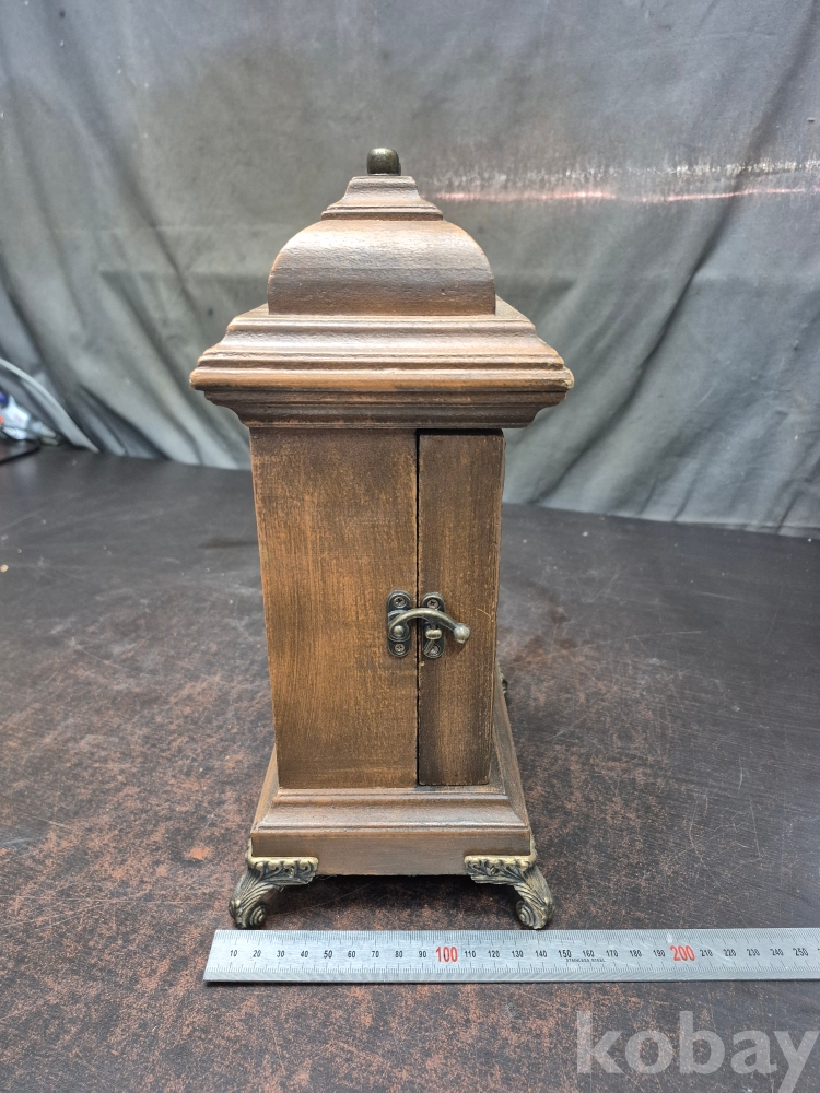 원목과 동장식으로 마감된 탁상용 건전지식 시계겸 열쇠 보관함 국적 미상 20*15*32