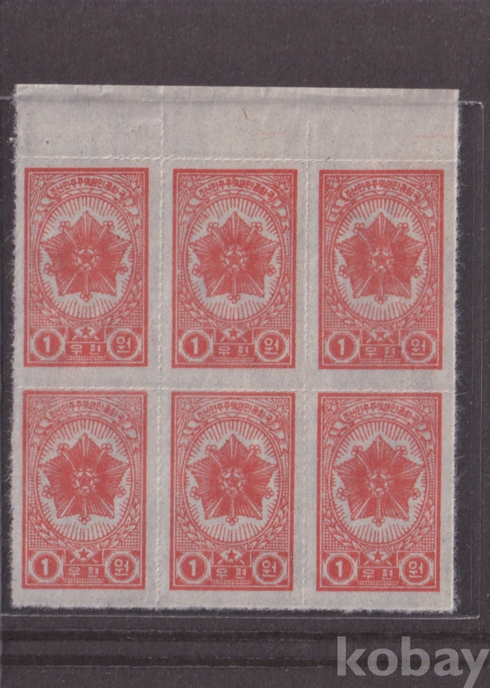 [윗동네 미사용 우표 모음展] - 국기 훈장 1원(6장) 블럭