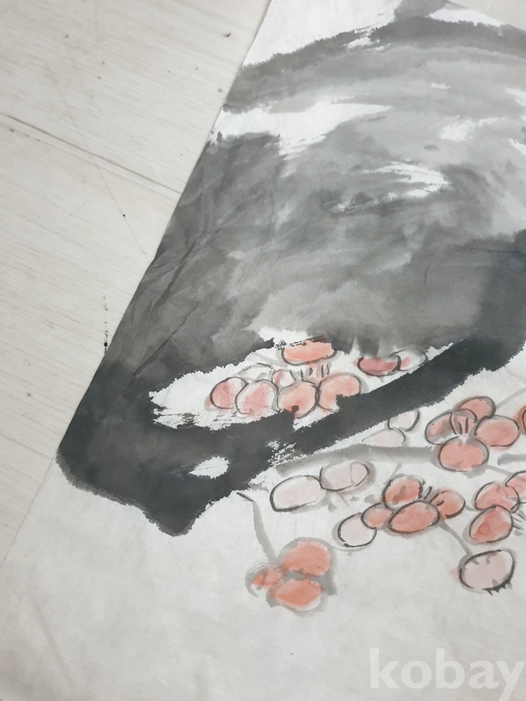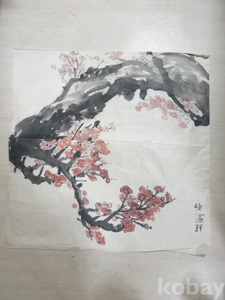 {천원경매} Y-11.0899 매화 꽃 그림(69*69, 찢어진 부분 있음, 접어서 배송)