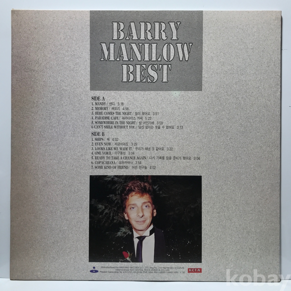 LP 36,150-96 Barry Manilow Best . 92 한양 자켓 EX+ 알판 NM
