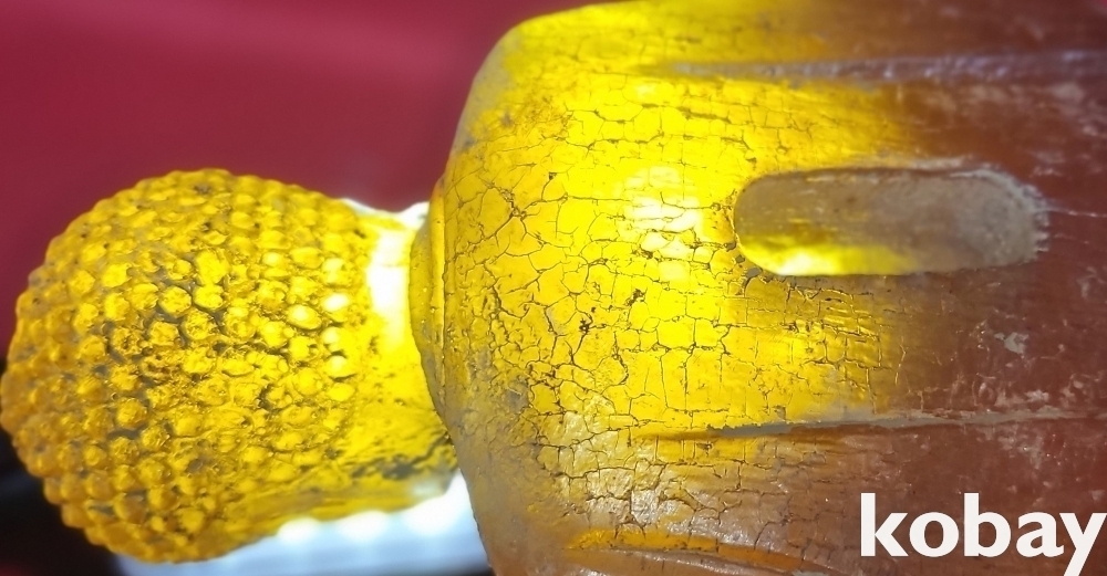 소재를 알 수 없는 불빛이 투과되는 좌불상입니다,