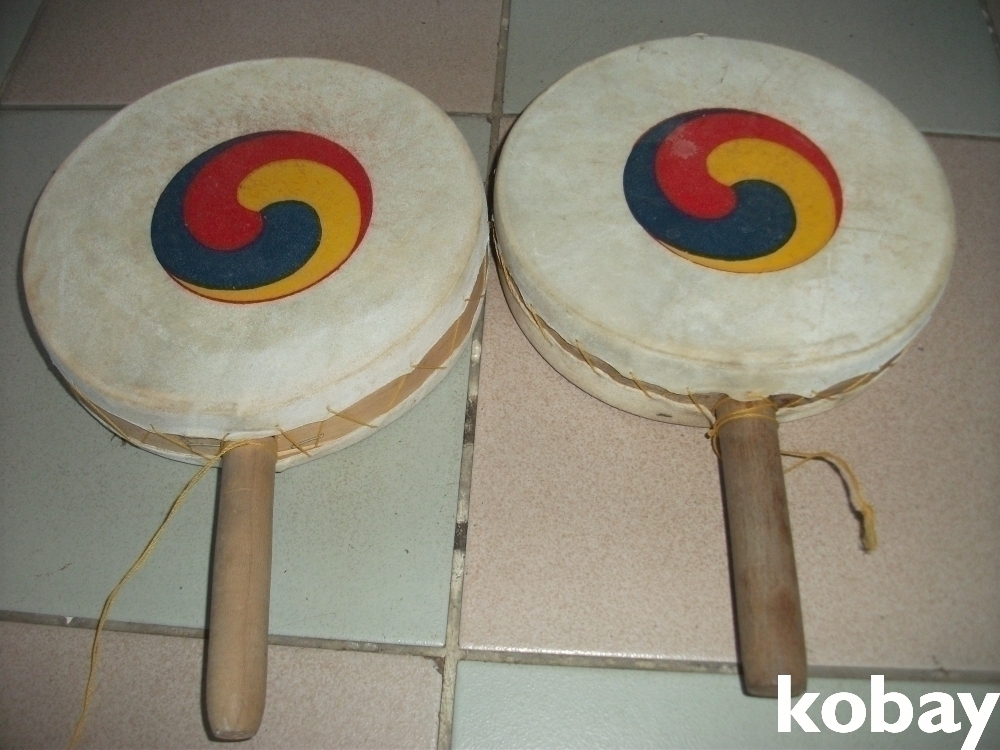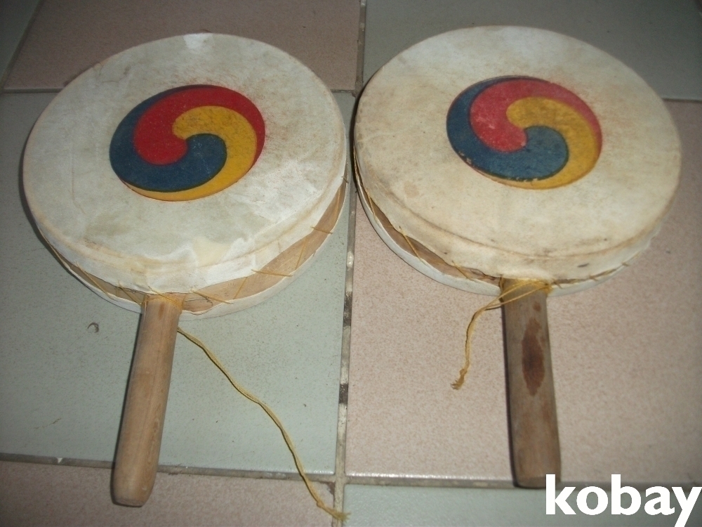 진당채 태극무늬 소고 작은북 2점 지름 22 cm 길이 34 cm 외사진참조