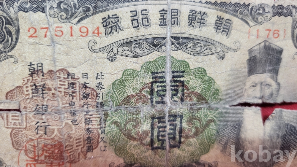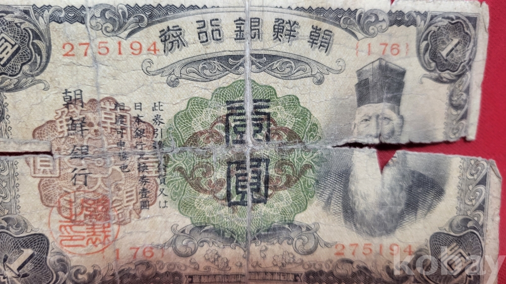 K ㅡ6책 2호 내4번 ////// 일제강점기 때 사용되었던 조선은행의 일원 지폐입니다,