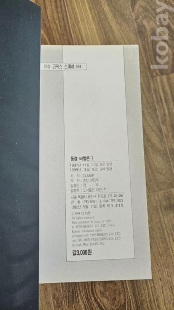 | 물품 크기 | 코믹스판 보다 조금 큼 |