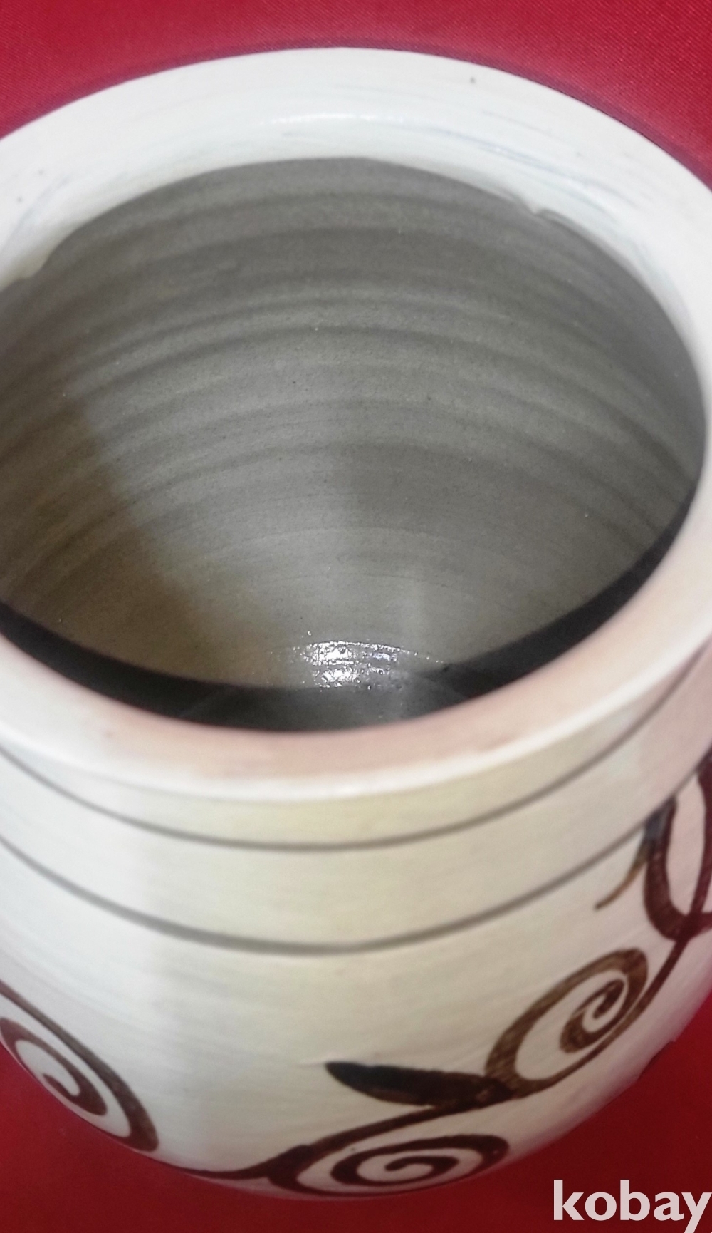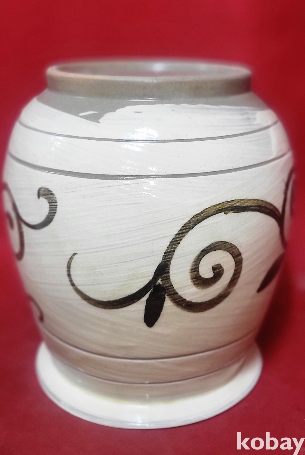 본 기물은 서울 구로동 소장자 가정에서 다수의 고도자기와 유명한 현대 도자기 호산안동오 초석권순형 희제황규동