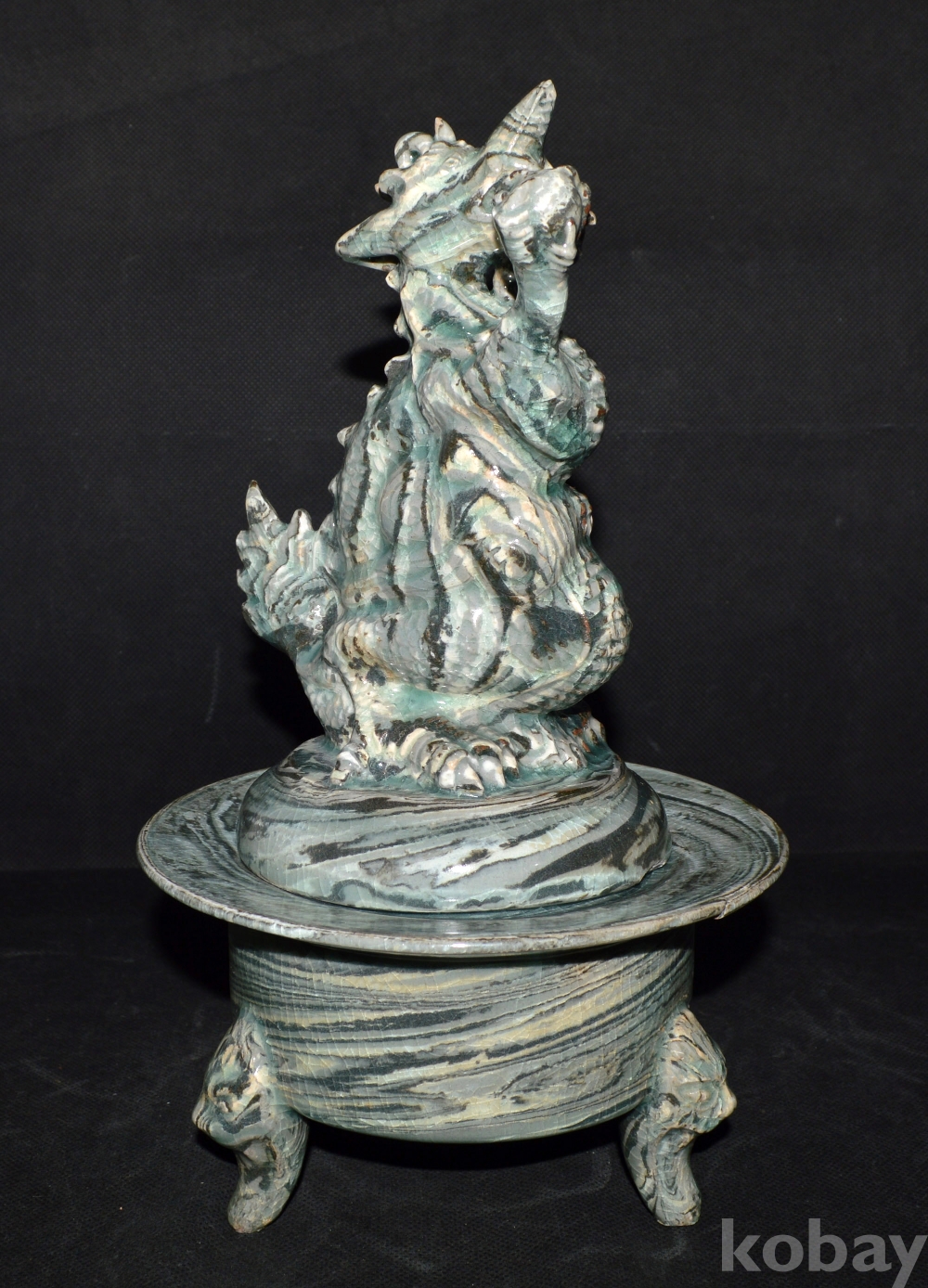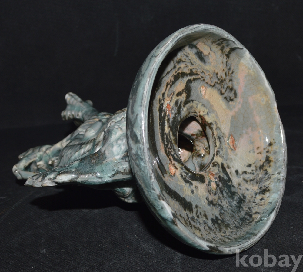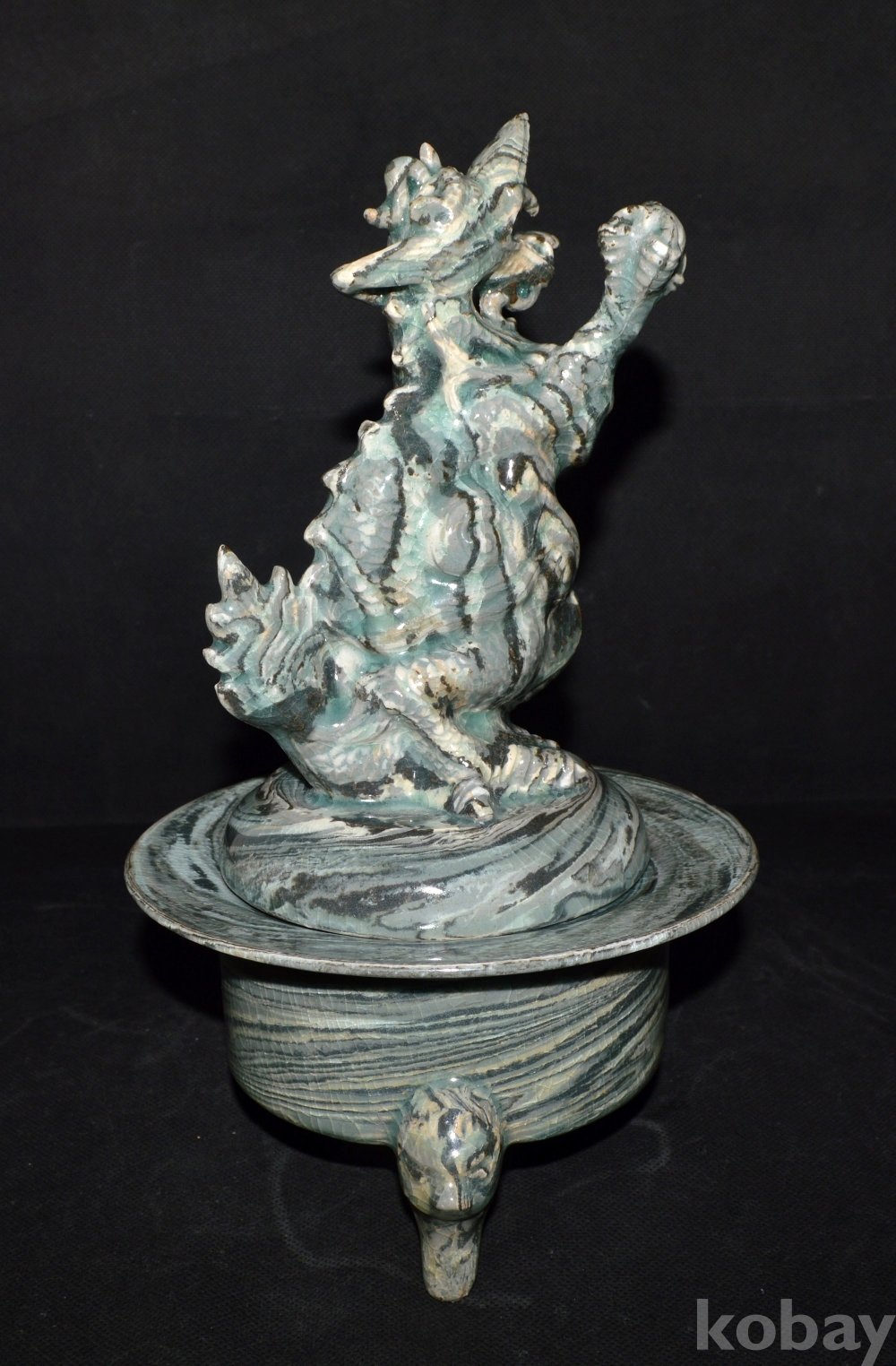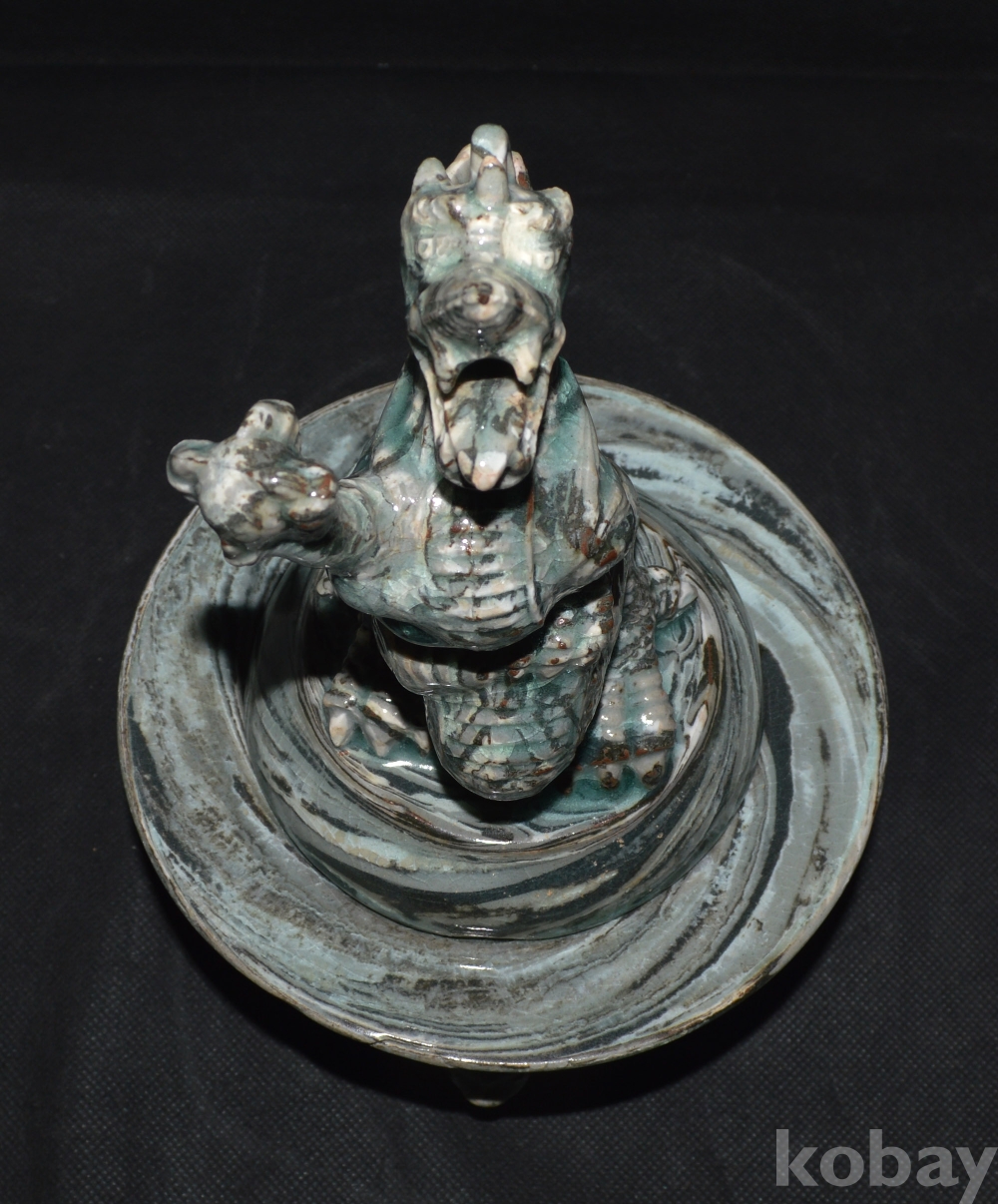 포효하고 있는, 당당한 형상의 용 향로이며, 연리문으로 되어 있는 이런 향로는 어디에서도 보기 어려운 귀물입니다.