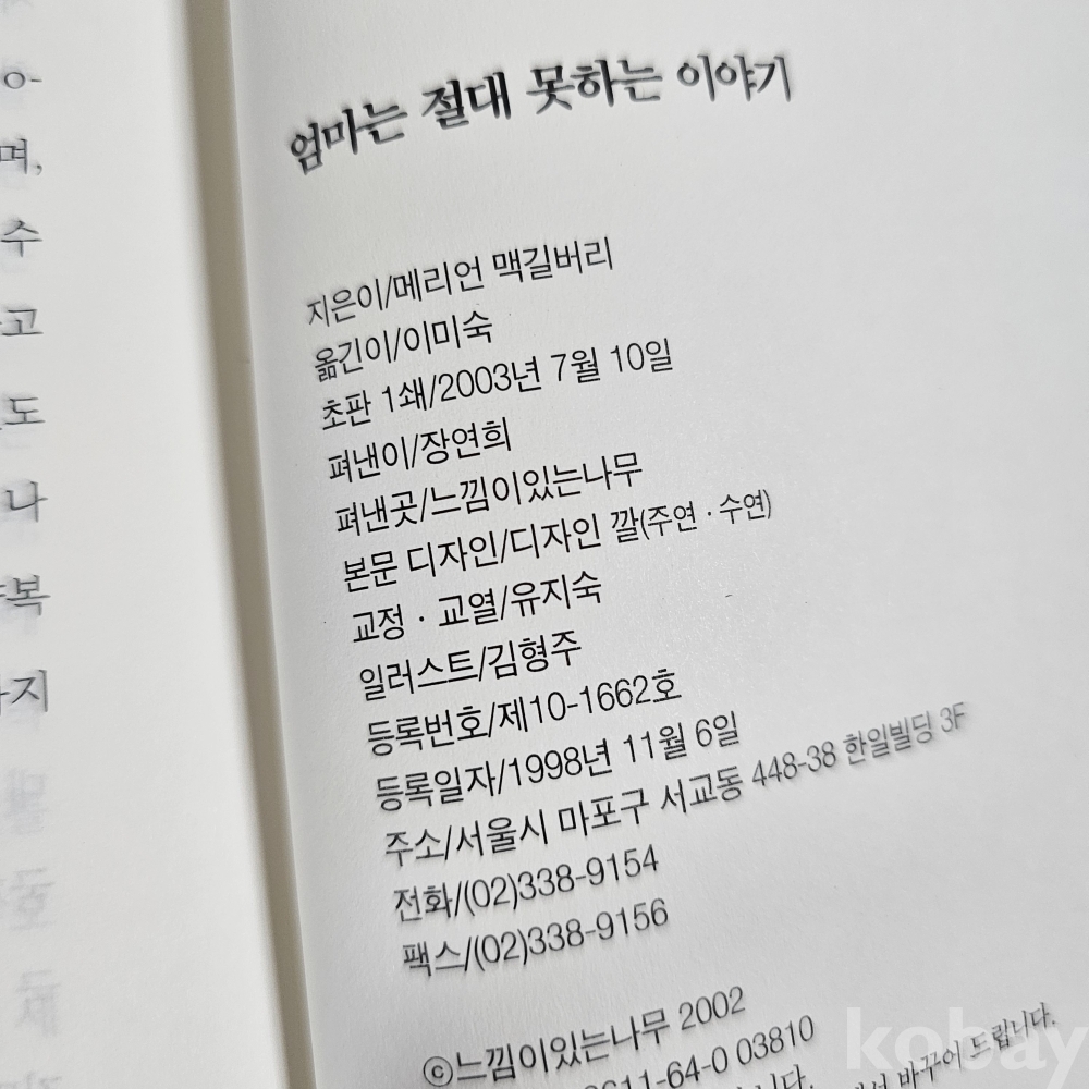 (((천원경매))) (((서적))) 엄마는 절대 못하는 이야기 (2003년 초판 1쇄)
