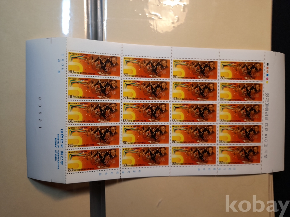 전지우표 * `88서울올림픽 유치 5주년 -하부 1단 천공따라 접음
