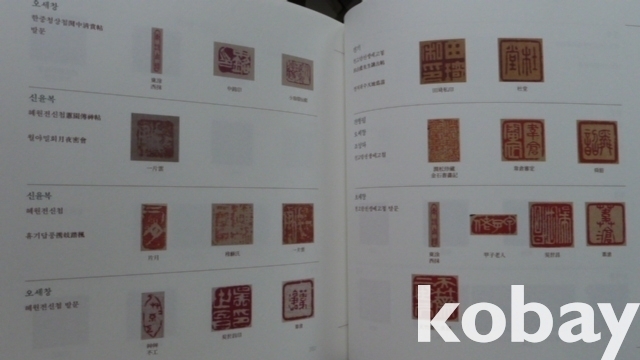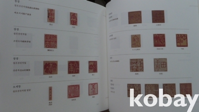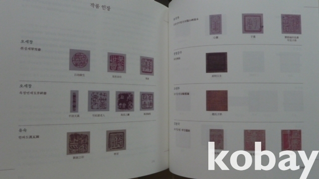 오세창의 전각, 유명 화가들의 인장이 수록되어 있다. (이미지를 참조 하세요)