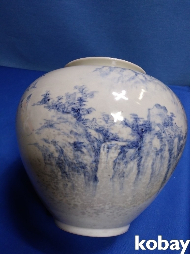 아름다운 산수 풍경이 멋있게 표현된 도자기 입니다.