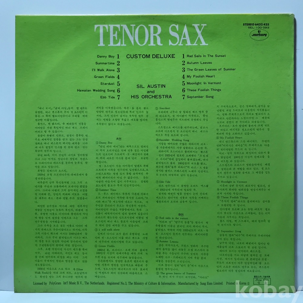 LP 36,350-56 Tenor Sax Custom Deluxe - Sil Austin And His Or . 73 성음 자켓 EX 알판 EX+