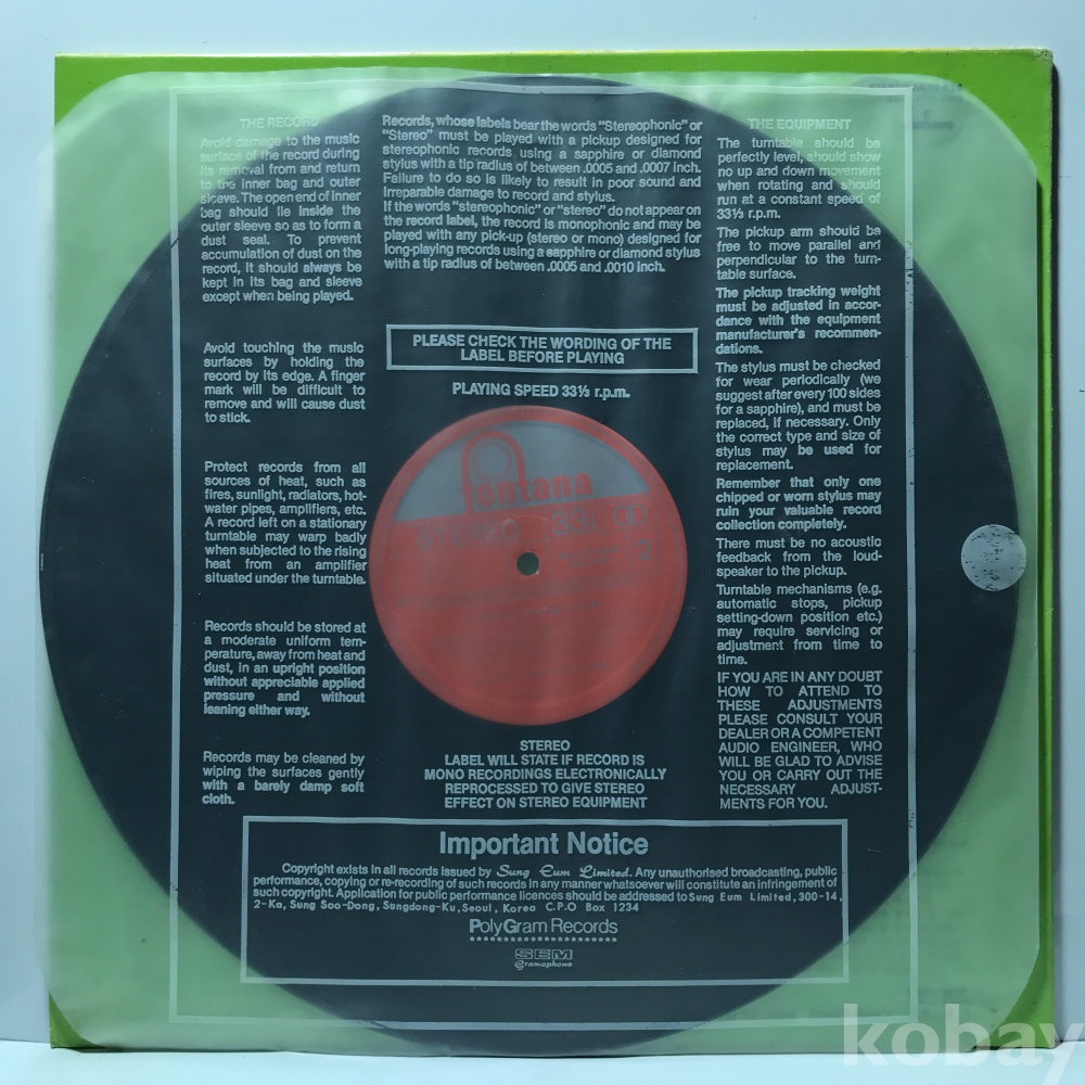 EX : 약간의 마모, 모서리 찢김 존재 음반상태