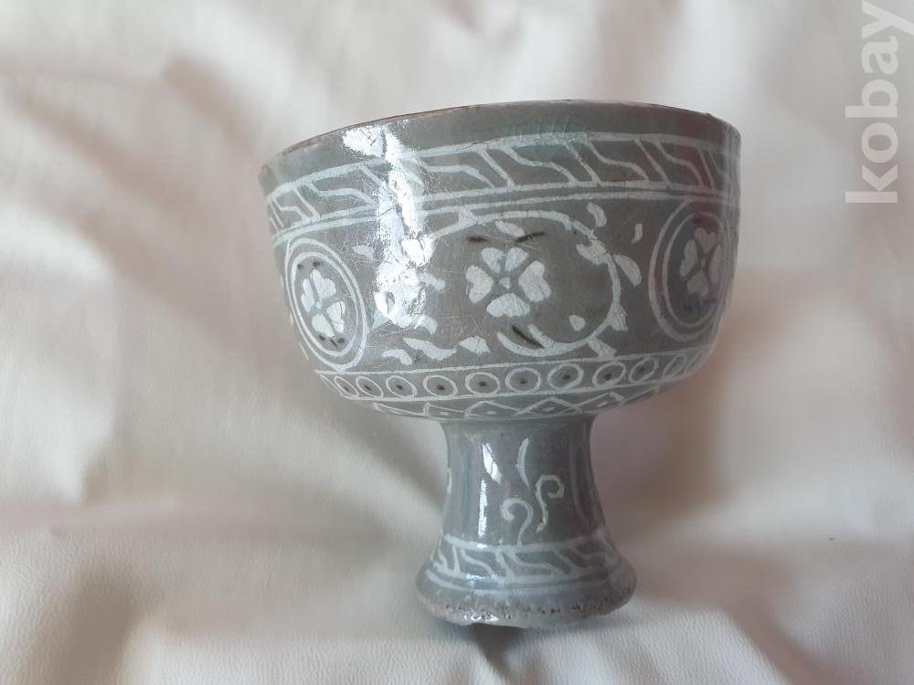 분청흑백상감 국화당초인화문 마상배