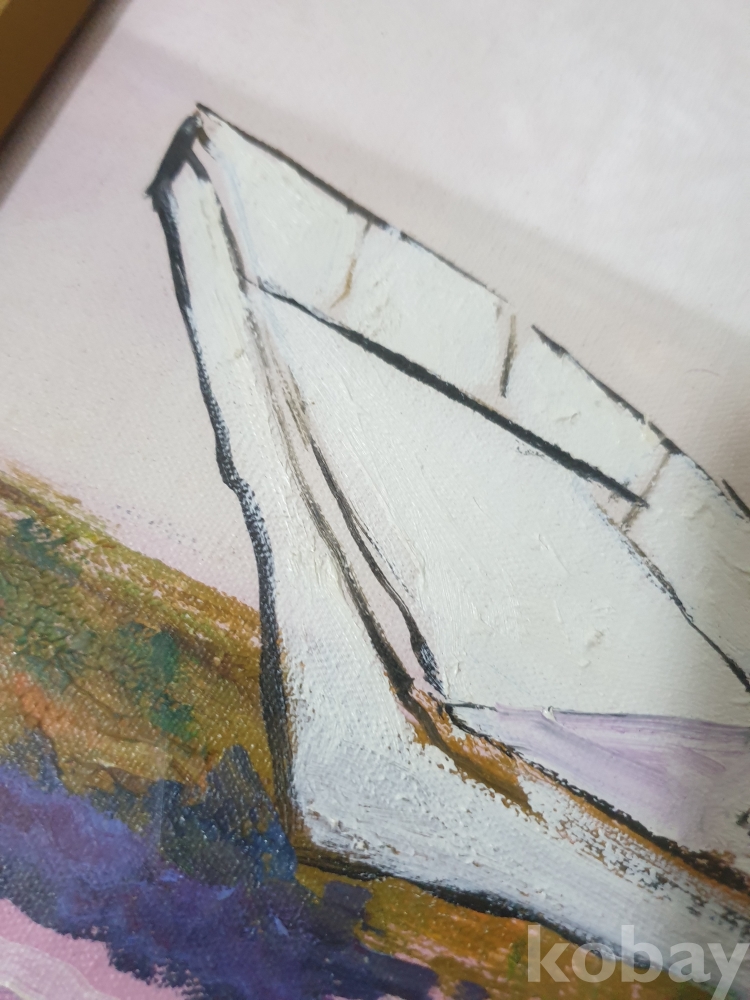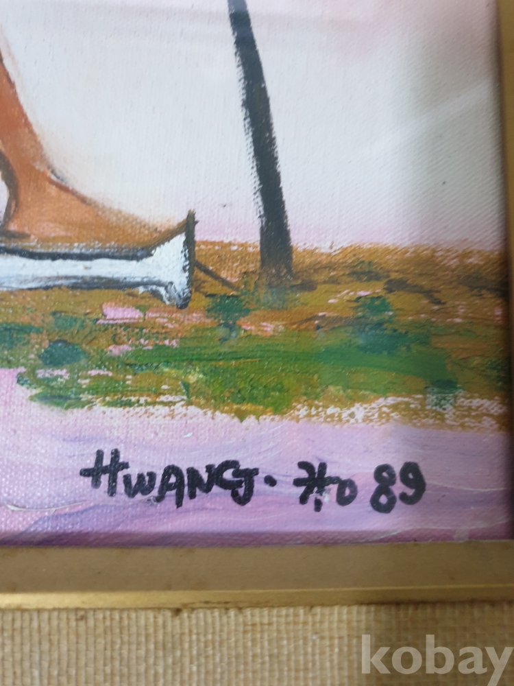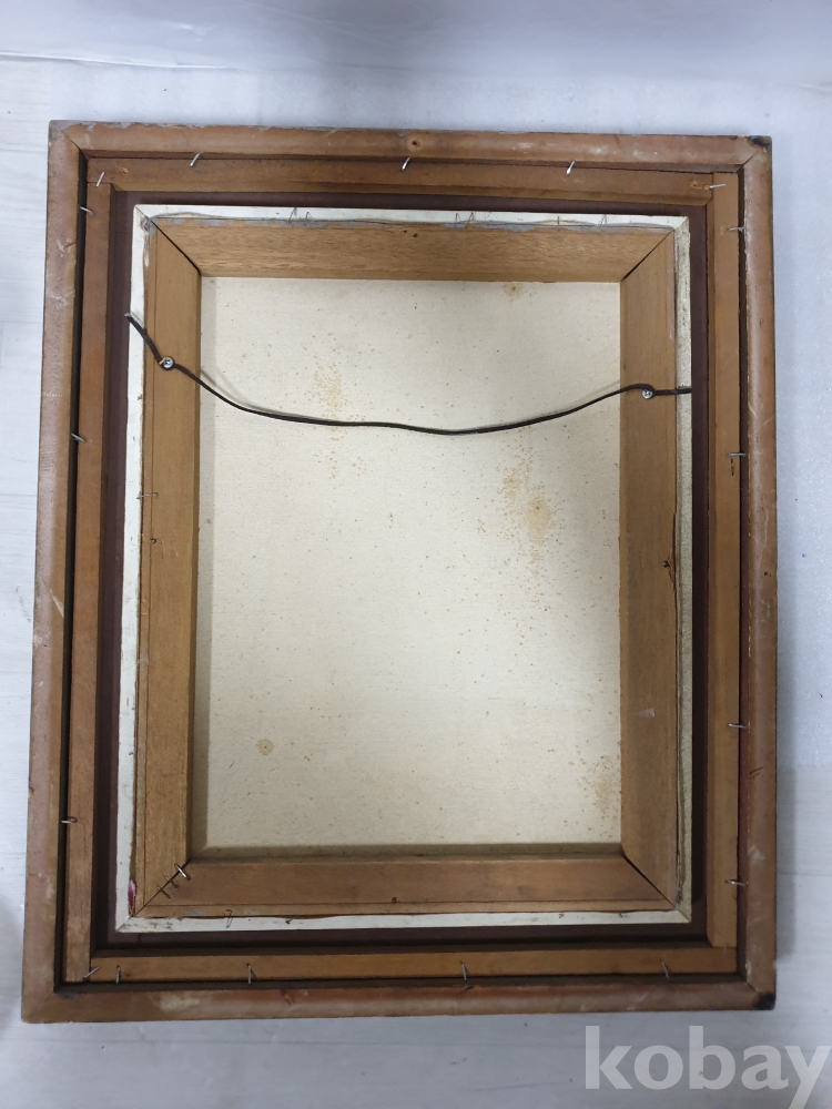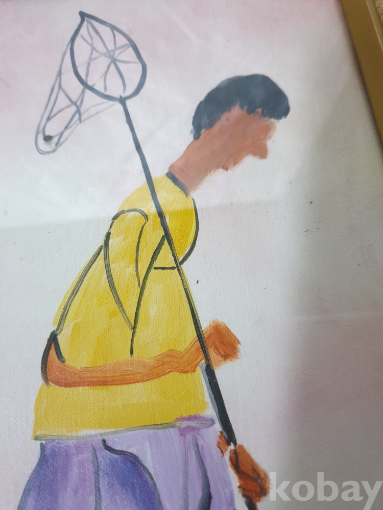 {천원경매} Y-11.1800 뜰안의 그물들고 있는 남성 그림 액자(44*53, 테두리 까짐, 묶음배송불가, 착불배송)