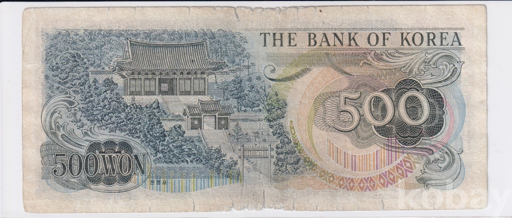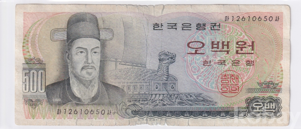 - 한국은행 1973년 이순신 오백원 1포인트 사용제 지폐