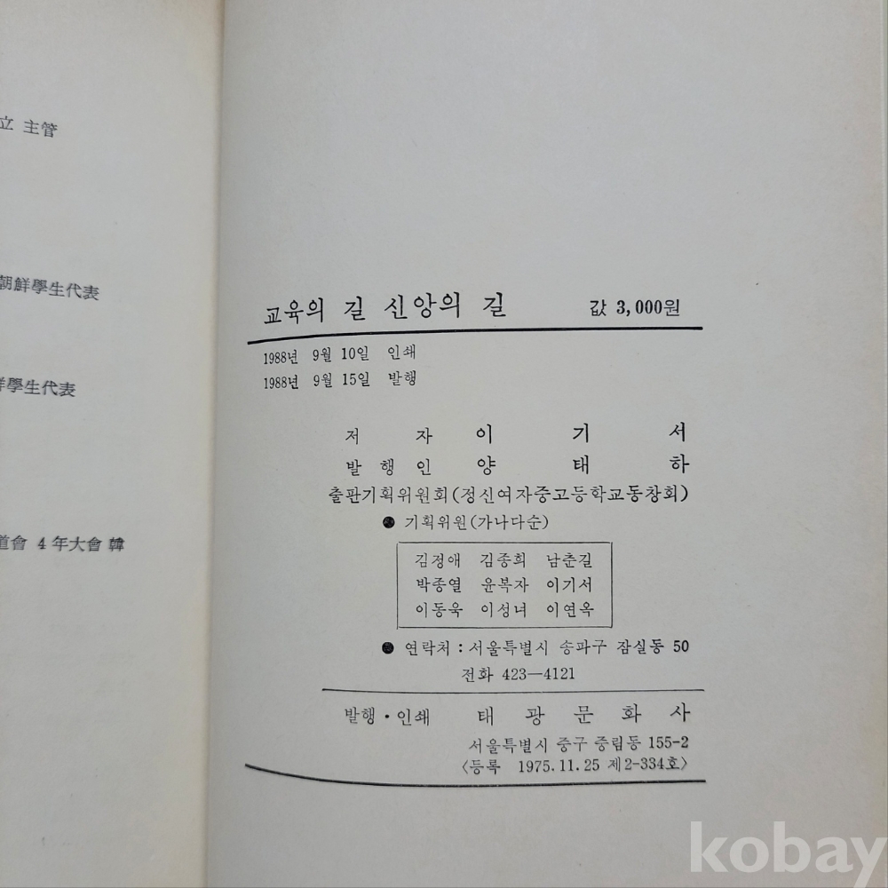 교육의 길 신앙의 길 - 김필례 그 사랑과 실천 (이기서 저/ 태광 1988년) : 중급/서고zz03