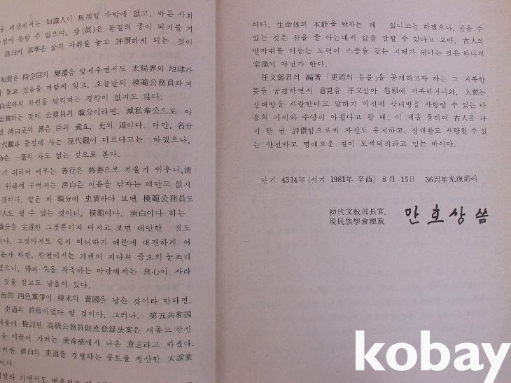 ▒ 1981년 관문사에서 발행한 임문석 편저, <吏道의 등불(淸白吏篇)>이다.