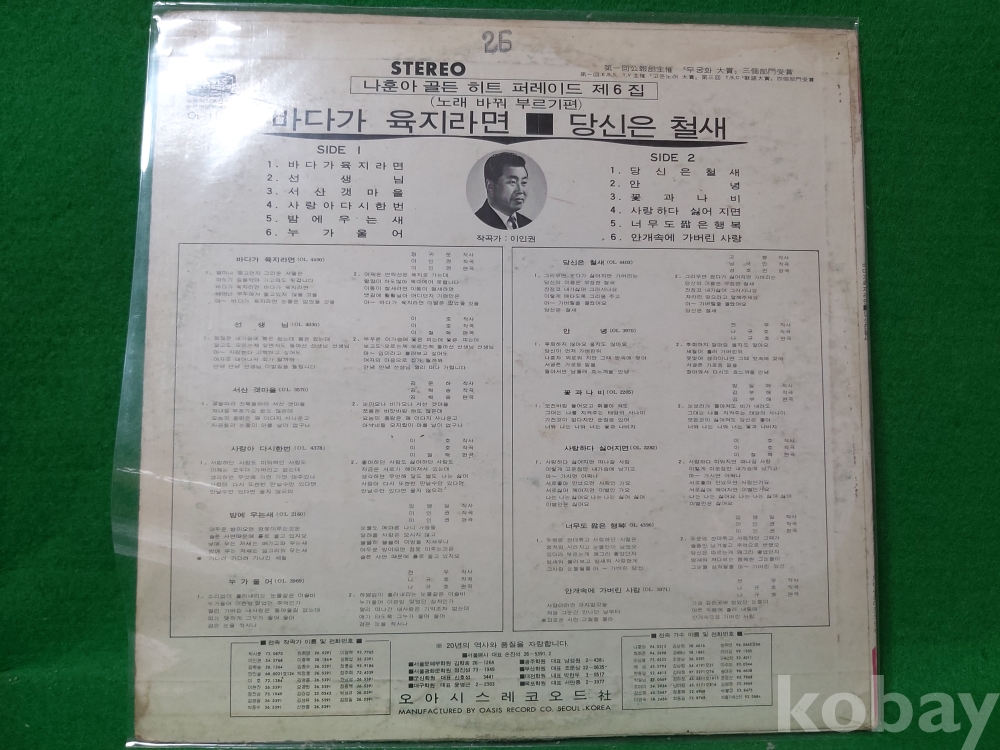 LP.레코드 = 가요 = 나훈아6집(노래바꿔부르기편) - 바다가 육지라면