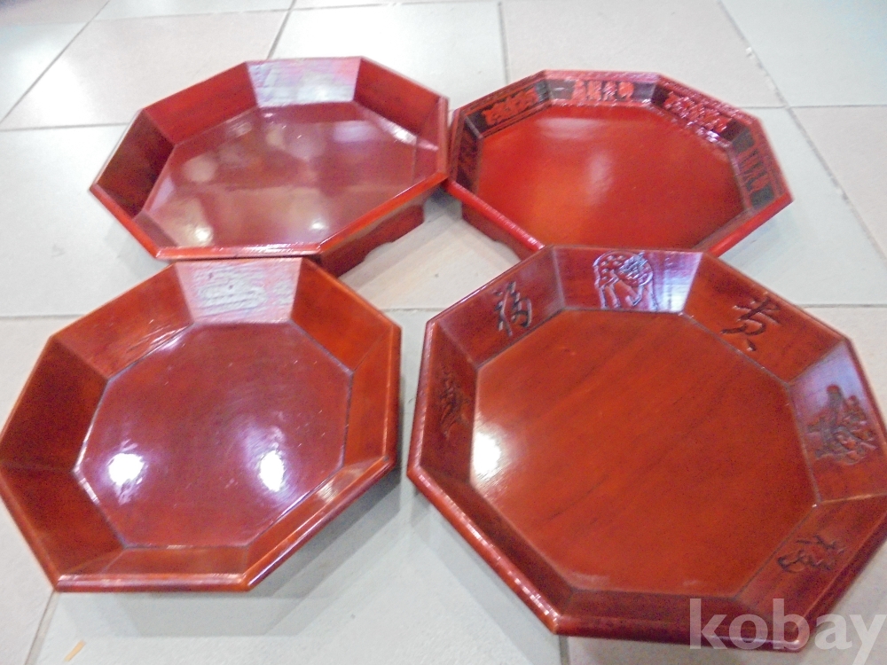 좋은 은행나무류로 2점은 군방화 사슴 귀복자와 귀무뉘와 수복수명 자가들어간 아까워 미사용한 틀이맞는 고급 과반겸 찻반 4점 1셋트