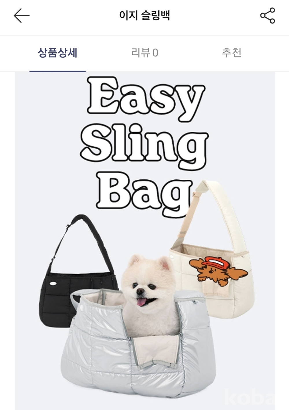 [천원경매] 11-433 래핑 찰리 반려견용 이지슬링백(미개봉제품, 실버컬러)