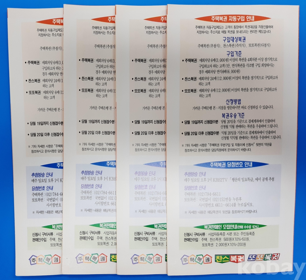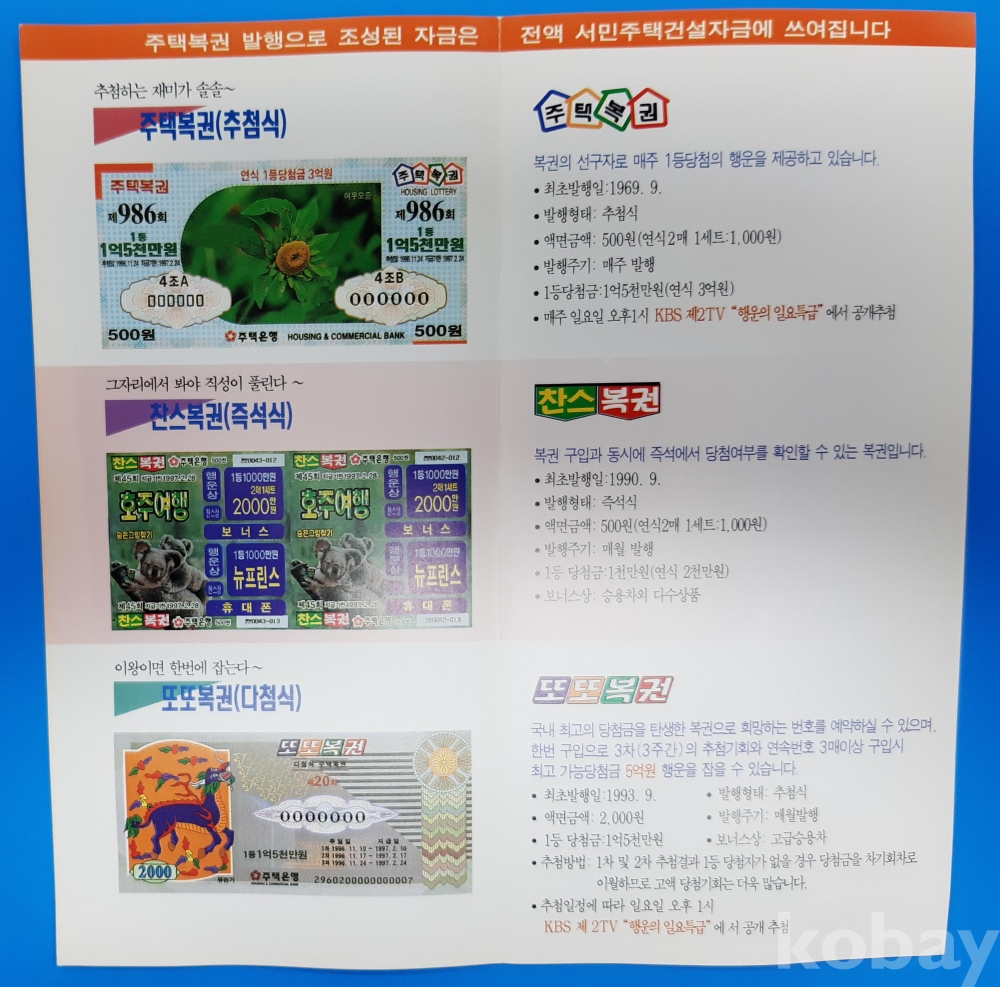 주택은행 홍보 팜플릿 (주택은행이 발행하는 3가지 복권) 4매