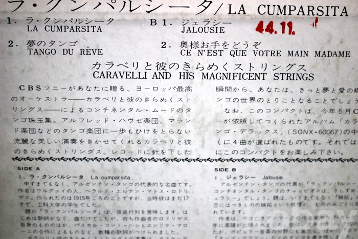 자켓의 상태 : A- (양호하나 뒷면에 연한 얼룩 약간)