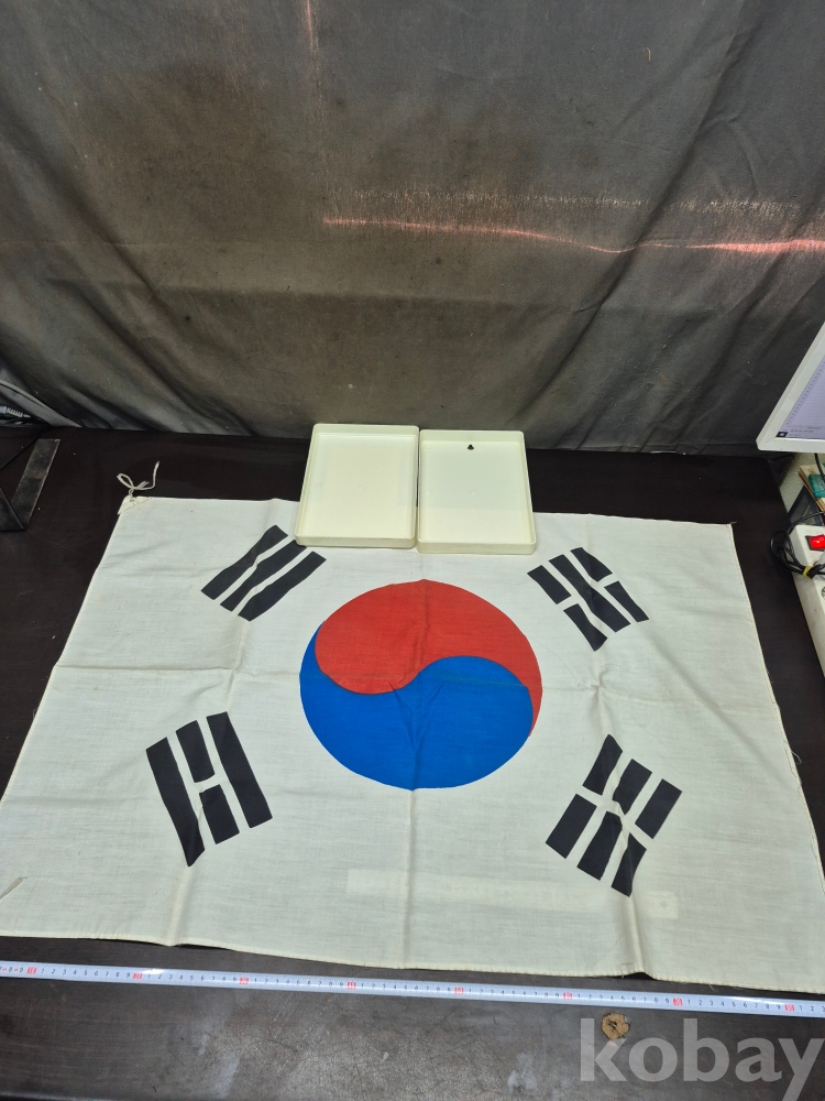 1980-90년대 국기함 재질 플라스틱 태극기 사이즈 81*61 플라스틱 케이스 사이즈 17*25*3