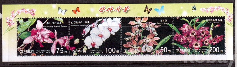 (식물) 북한 2003.7.28 란과식물 booklet pane of 4 MNH