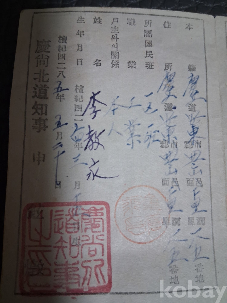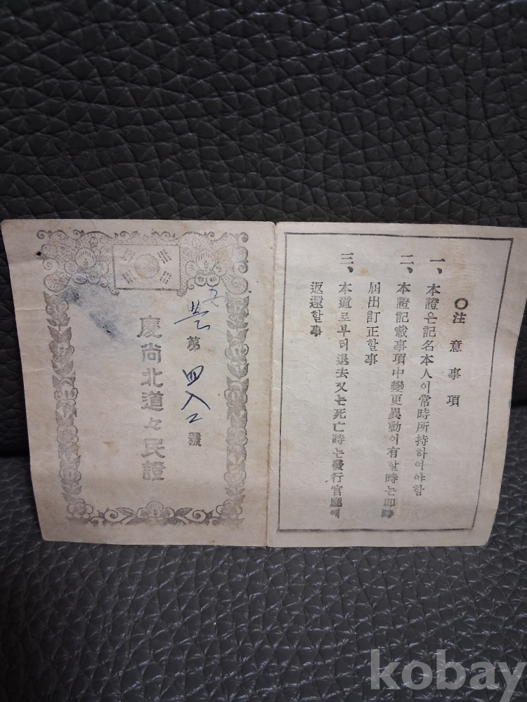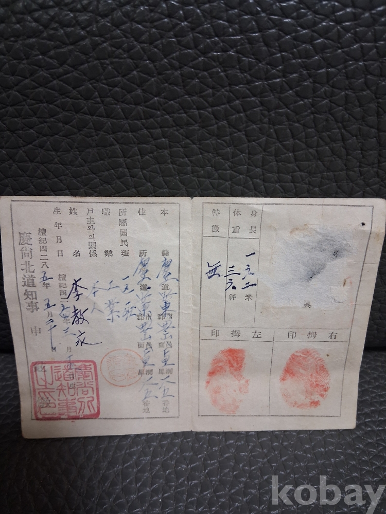 1952년 경상북도 도민증 입니다