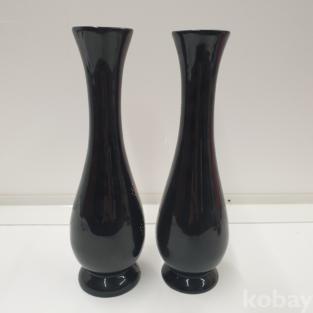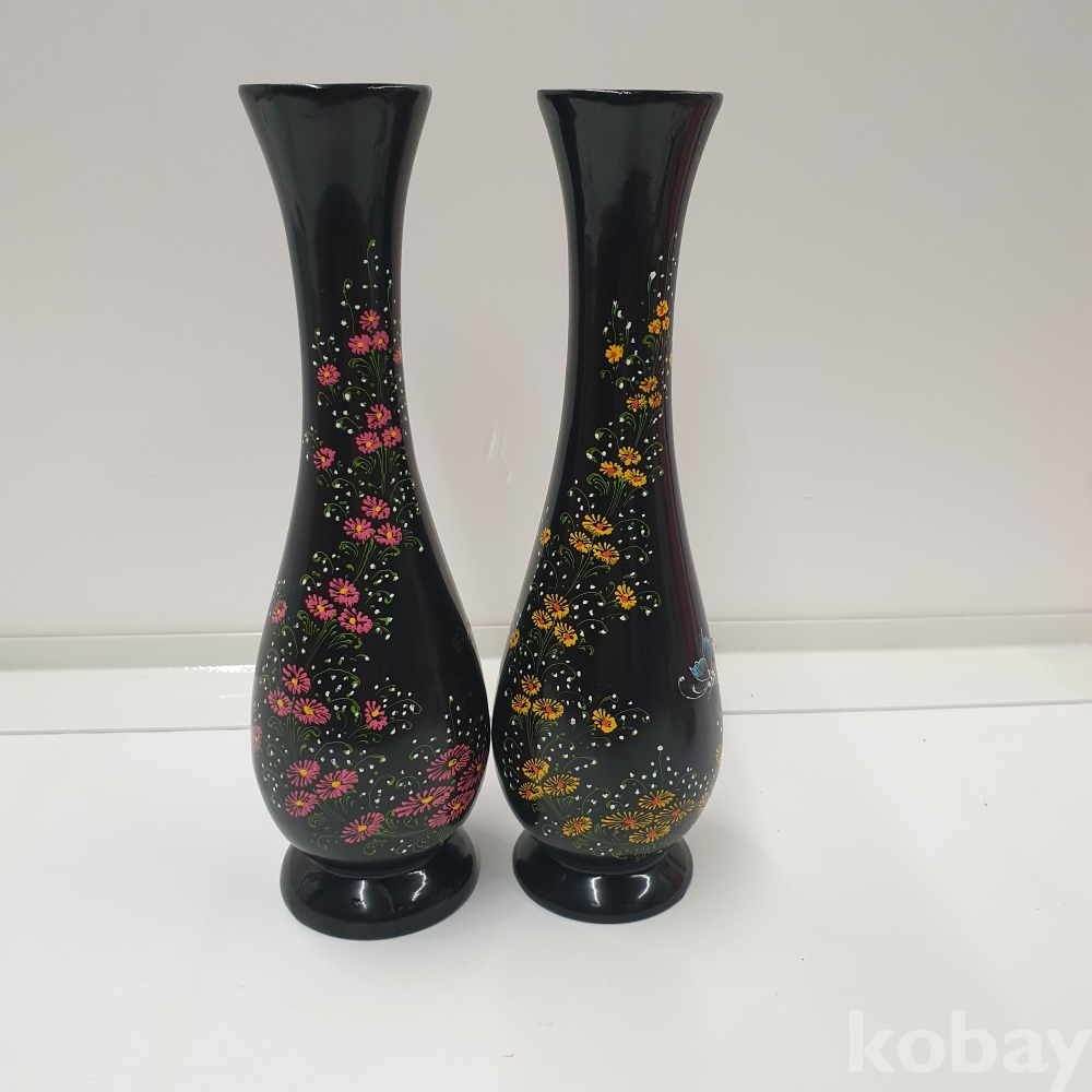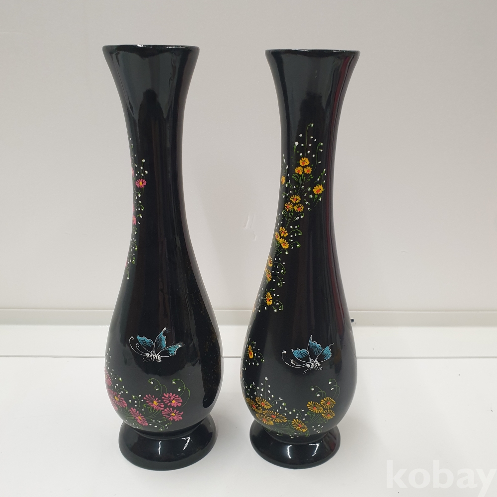 『천원경매』11-0249 나무재질 장식용 꽃병 2개 (약간 깨짐 있음, 총길이 25cm)