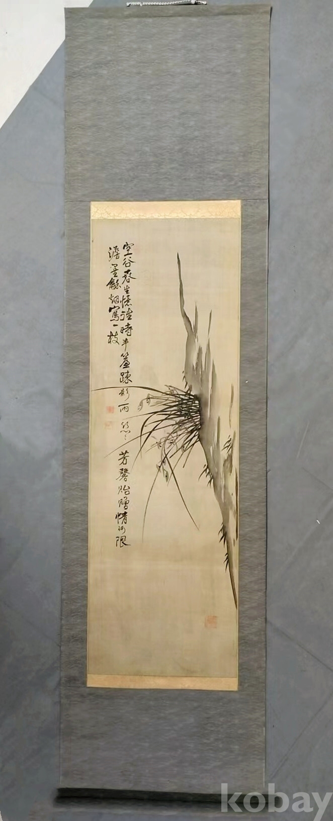 현재 사진의 족자에서 상하족자봉(상하족자축)만 없는 상태입니다.