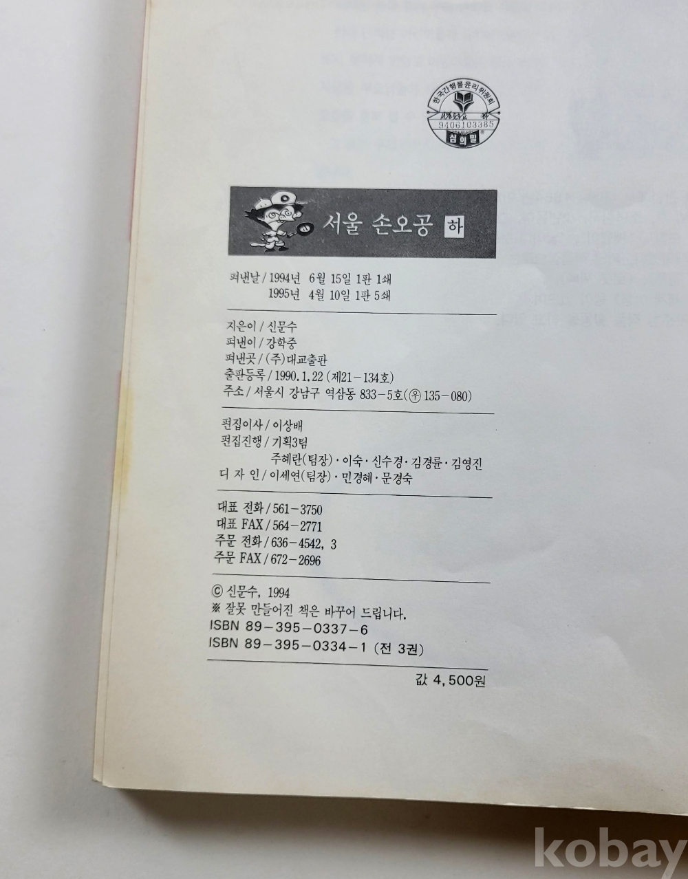 물 품 명 | 신문수 / 서울 손오공(하) / 눈높이명량만화(3) / 1995년 / 대교출판 |