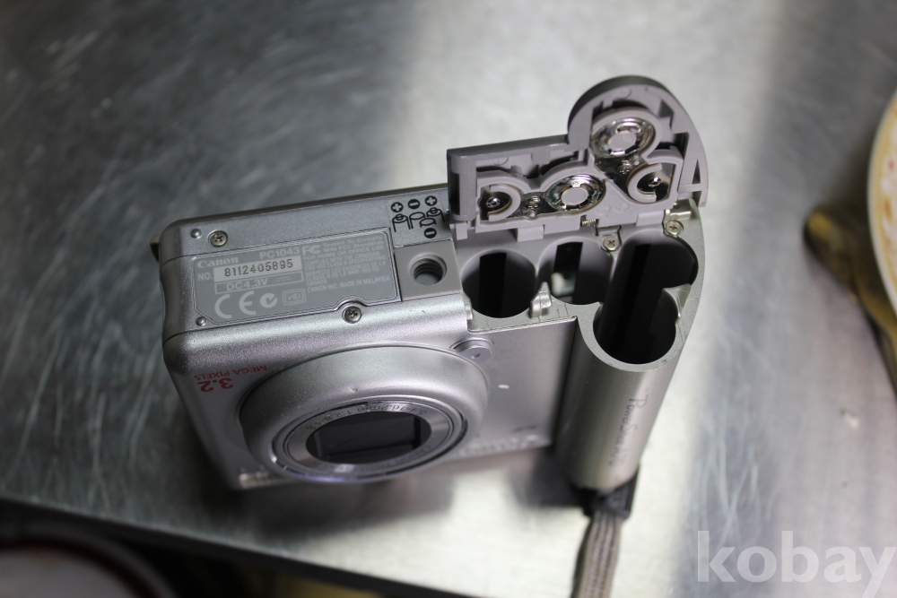 AAA 건전지 4개 들어가며