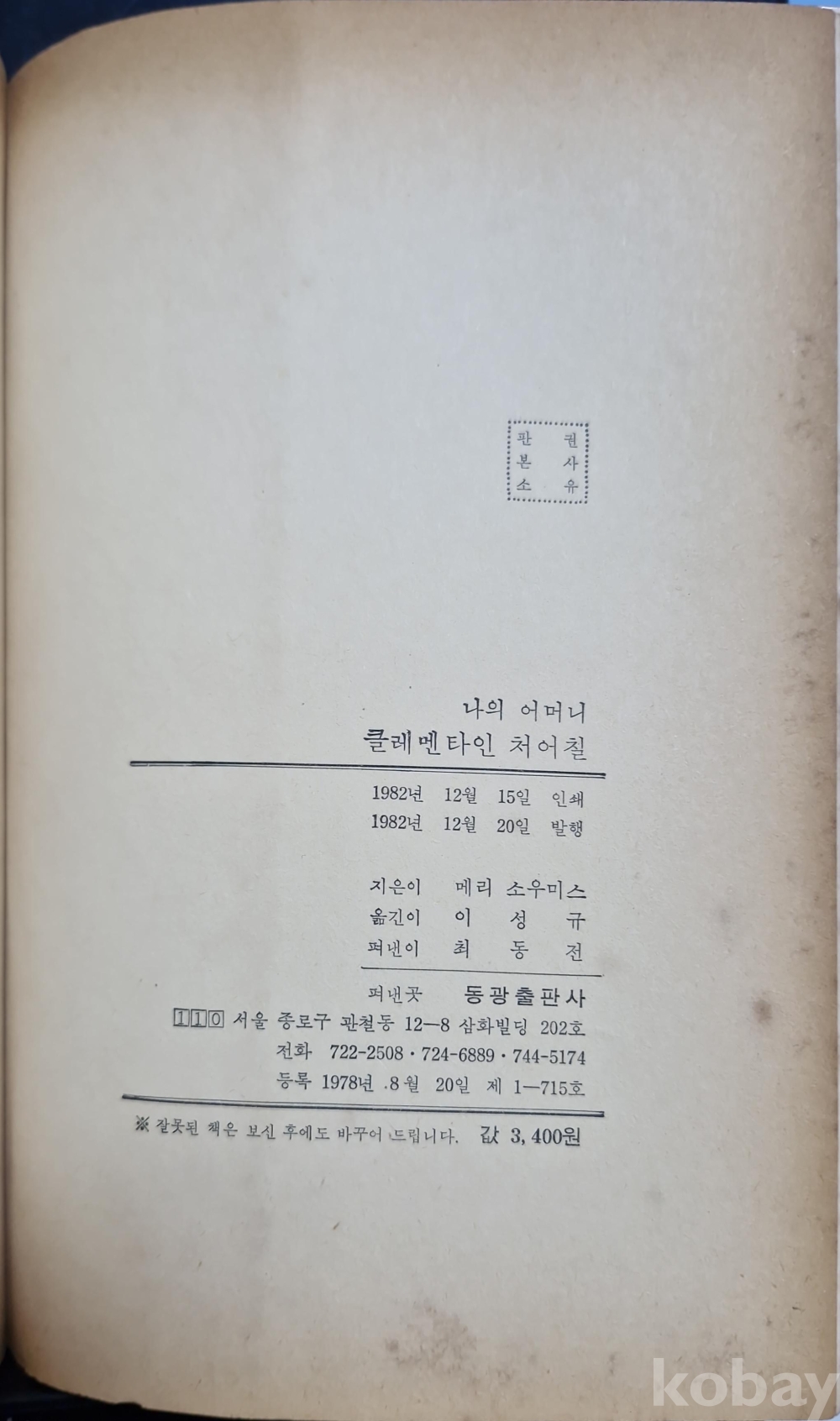 처어칠의 막내딸이 쓴 어머니 클레멘타인의 전기