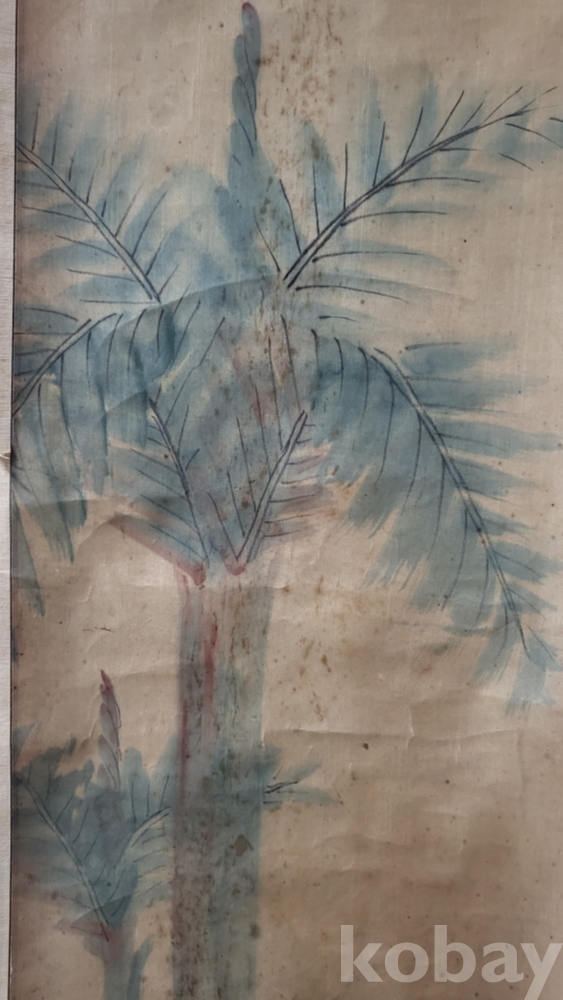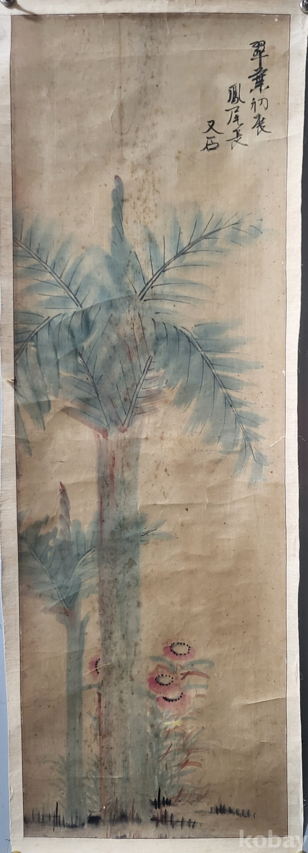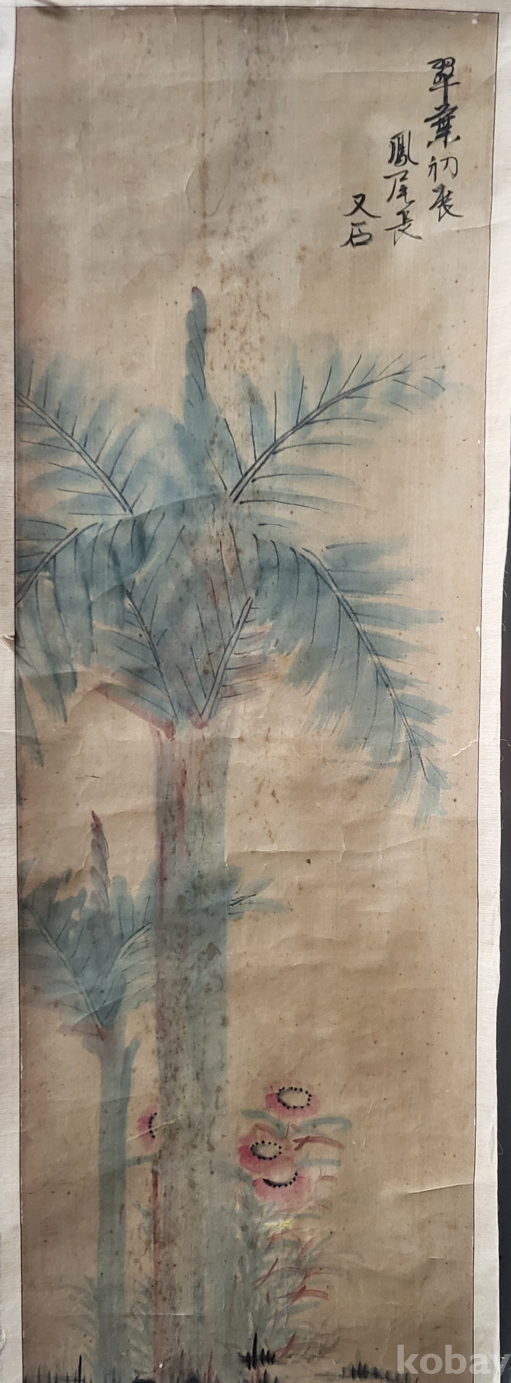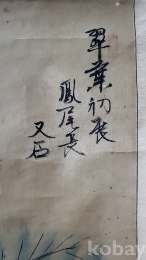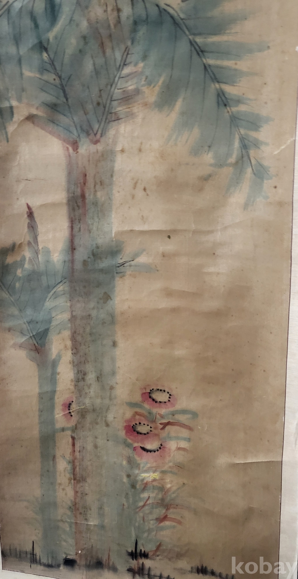 우석( 又石) 수결이 보이는 비단에 그려진 꽃그림입니다,